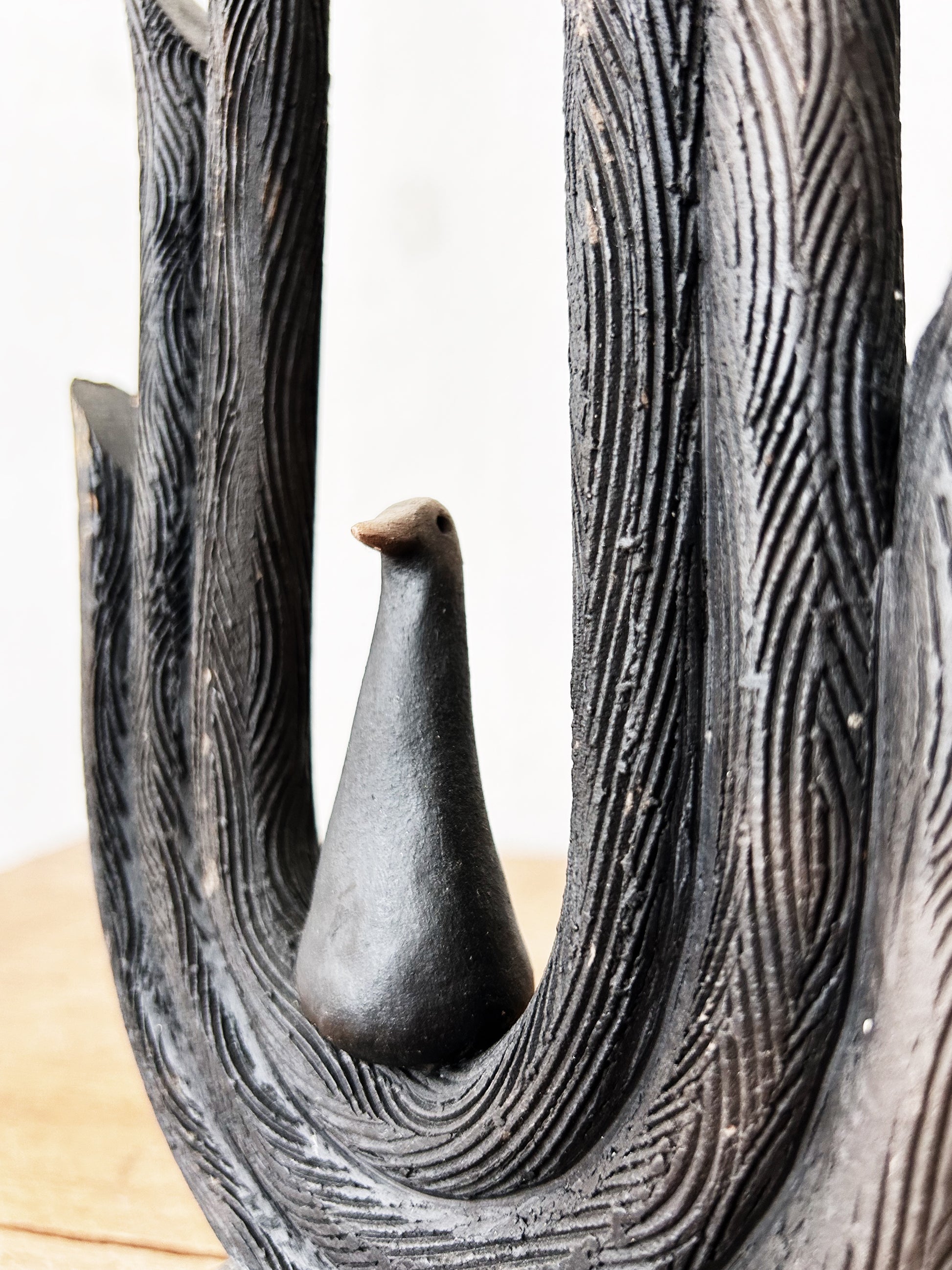 Such a stunner. Hand built ceramic folk art bird sculpture. Maker unknown, unsigned.