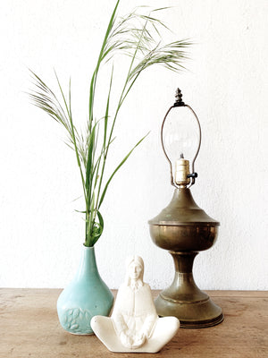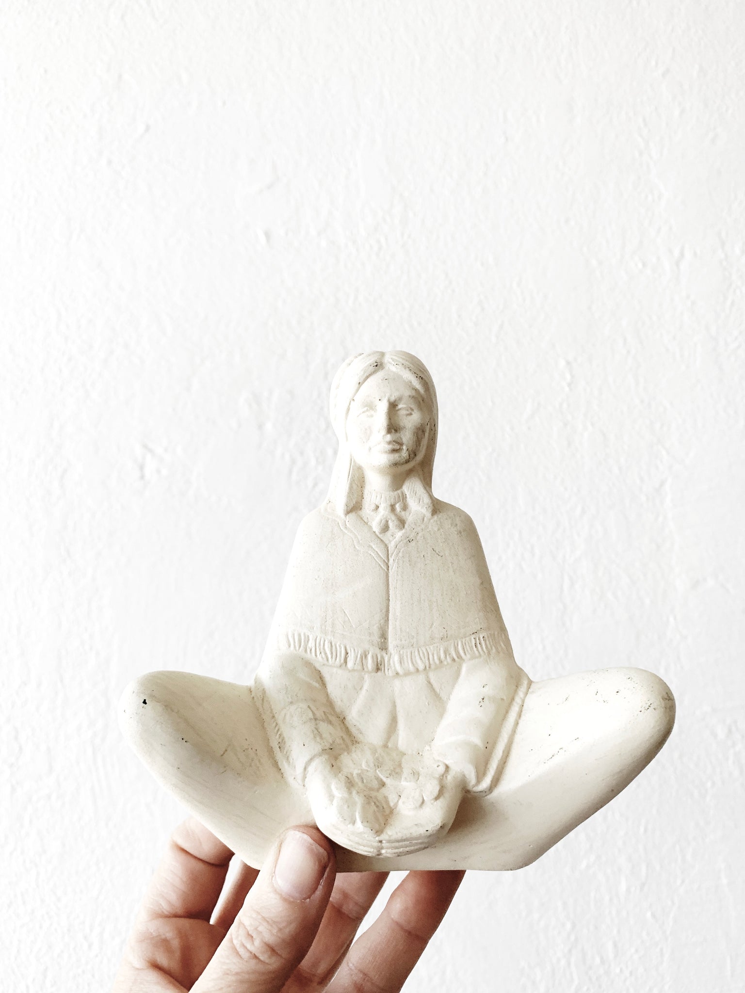 Peaceful meditative un glazed vintage ceramic statue.