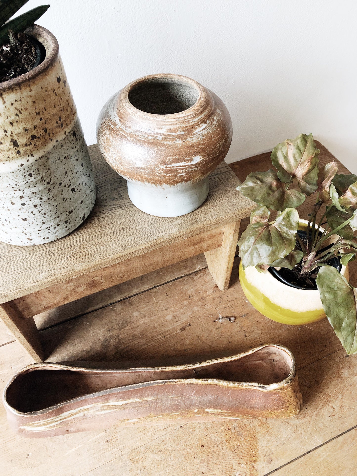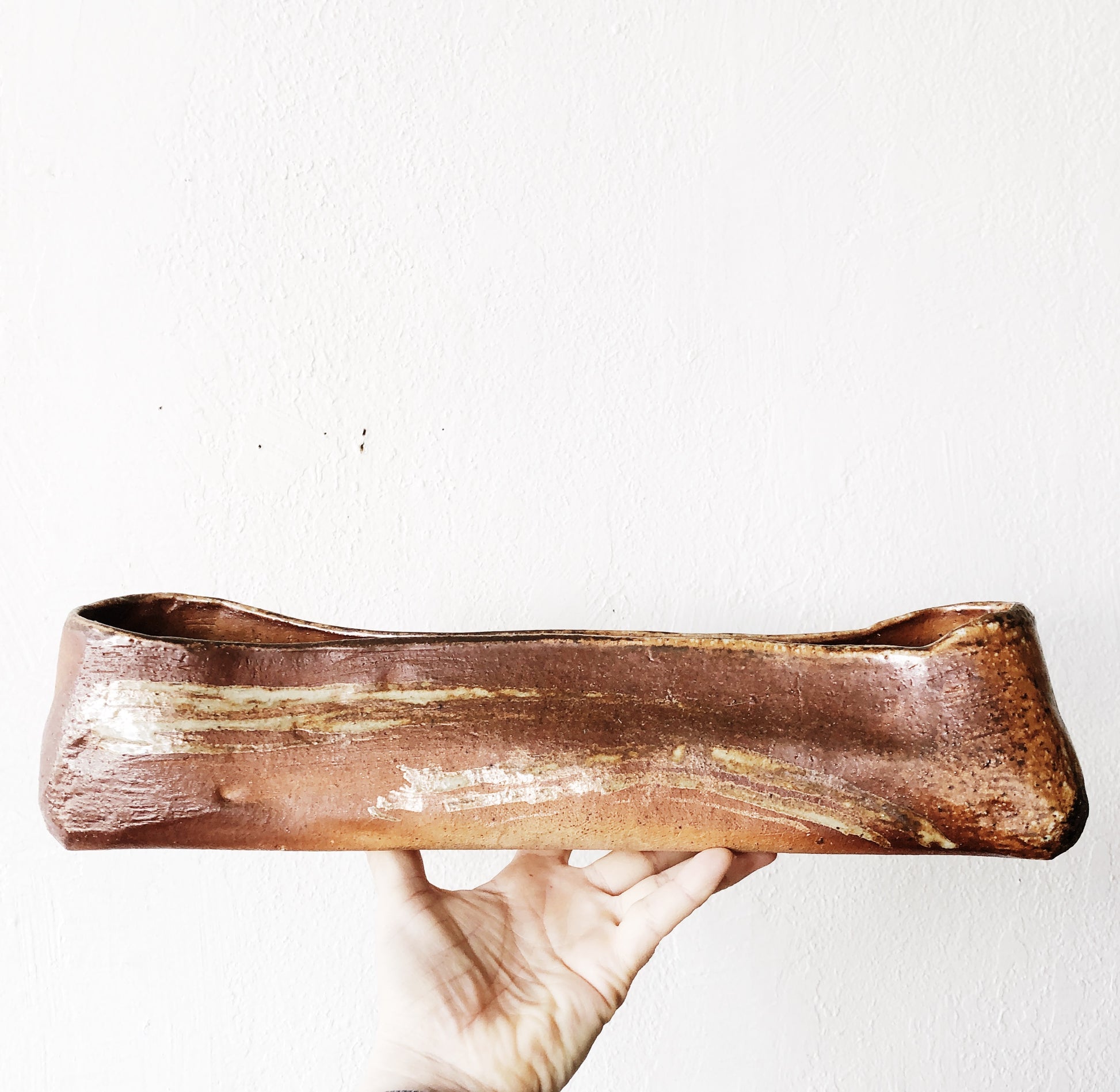 A uniquely shaped vintage Stoneware planter with a great oblong form. The glaze is fantastic