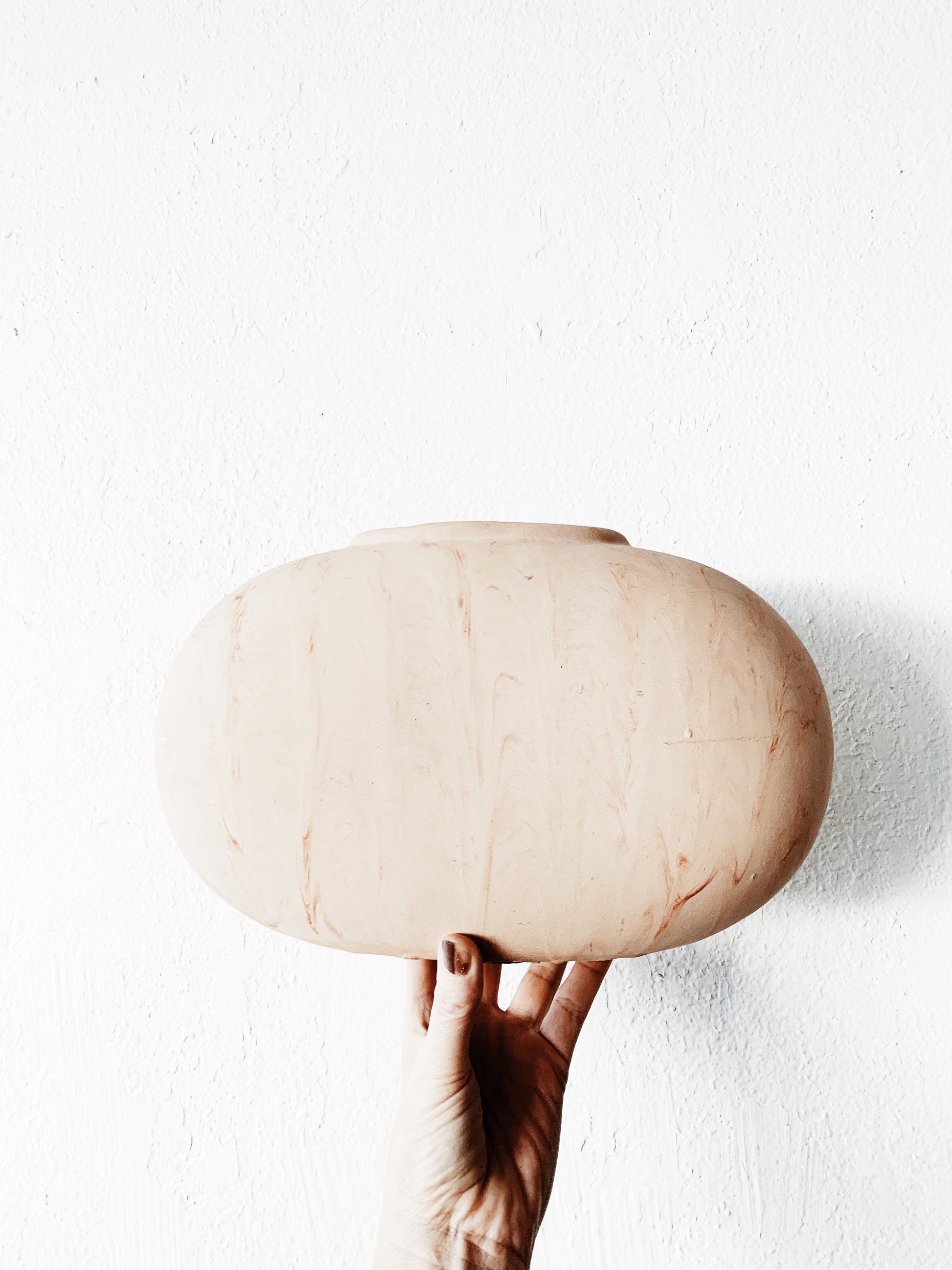 Pretty vintage ceramic vase with peachy terra cotta matte glaze. Has a slight marbled effect which make its almost look like wood! Very cool. Perfect oval shape too.
