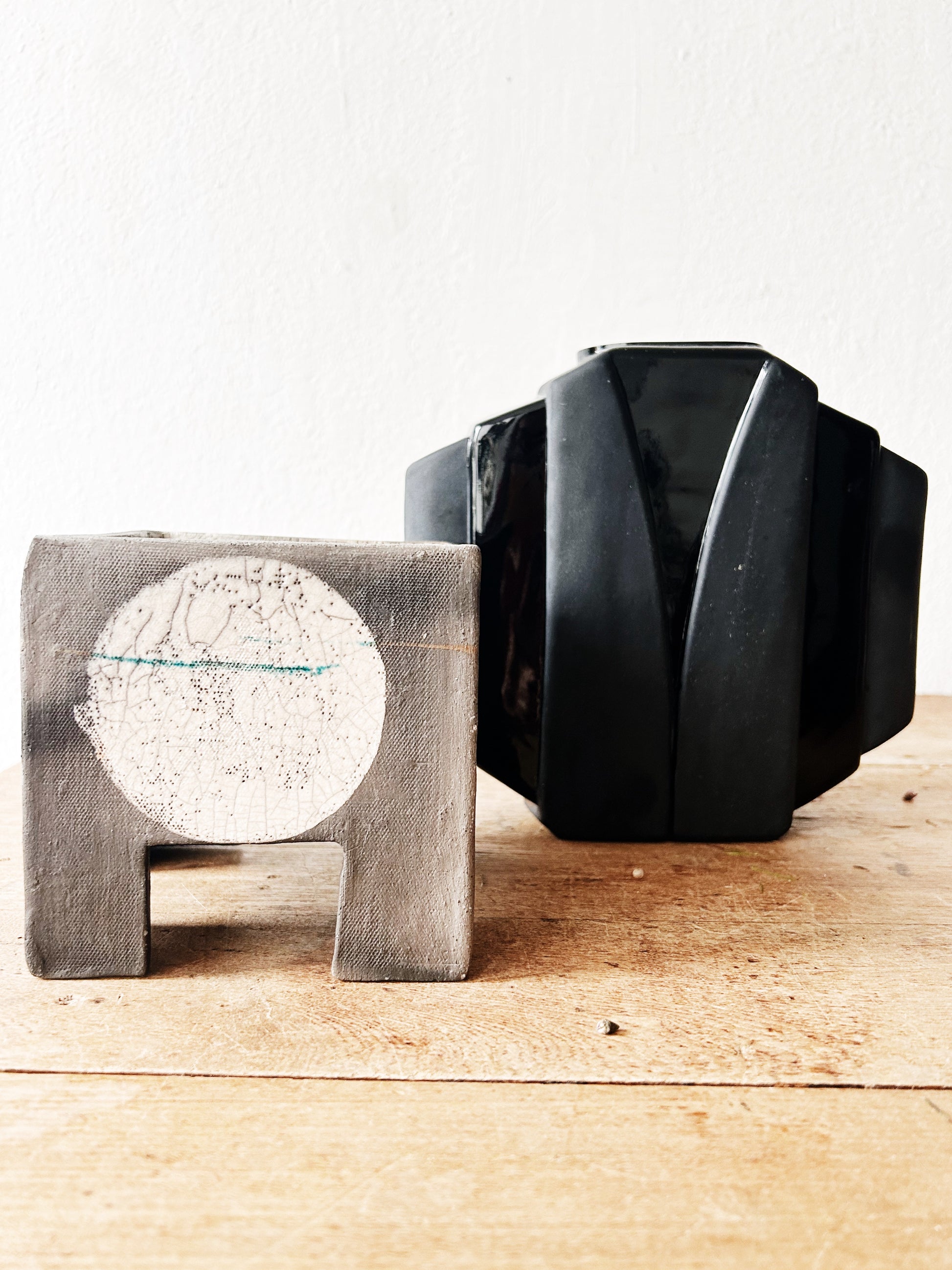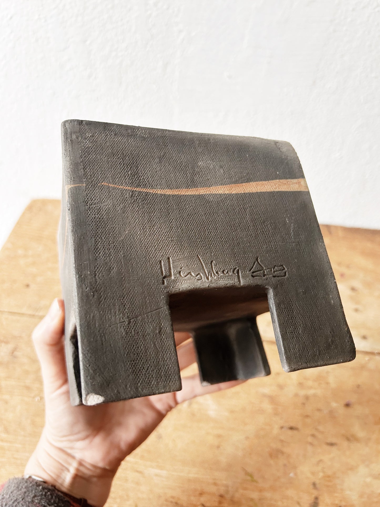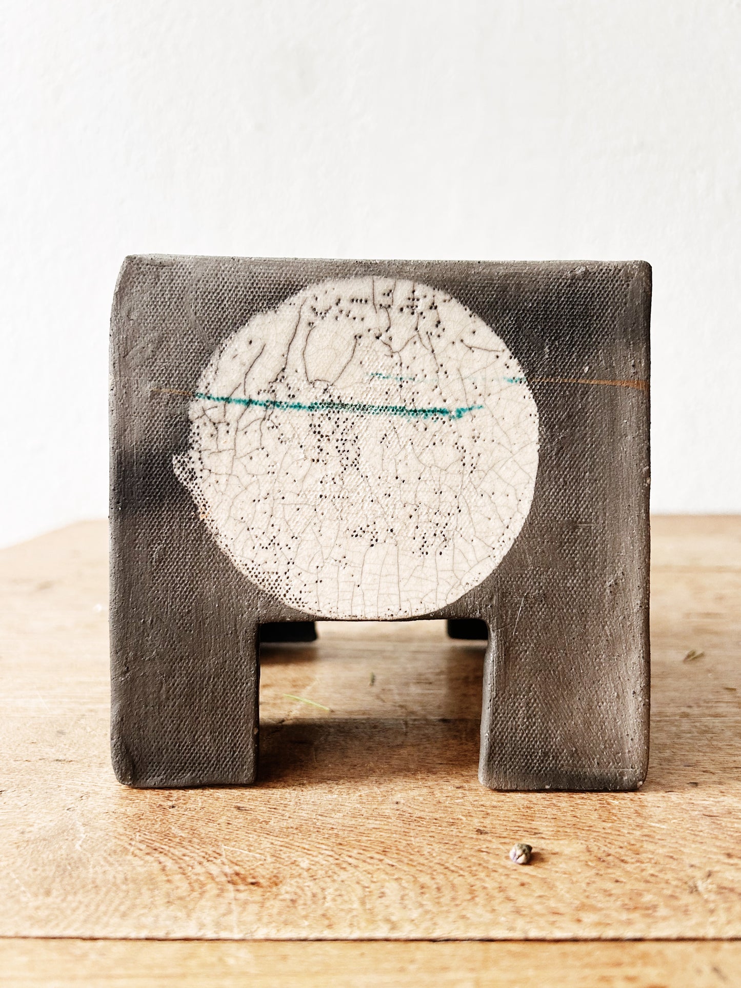 Lovely handmade Raku vessel by Lois Hershburg , cape cod ceramic artist. 5x5”