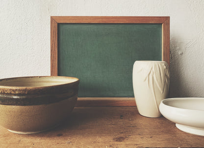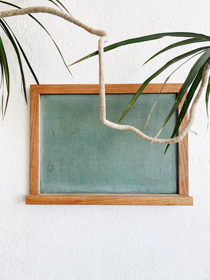 Sweet little wood framed chalkboard with chalk rest. Hanger on back