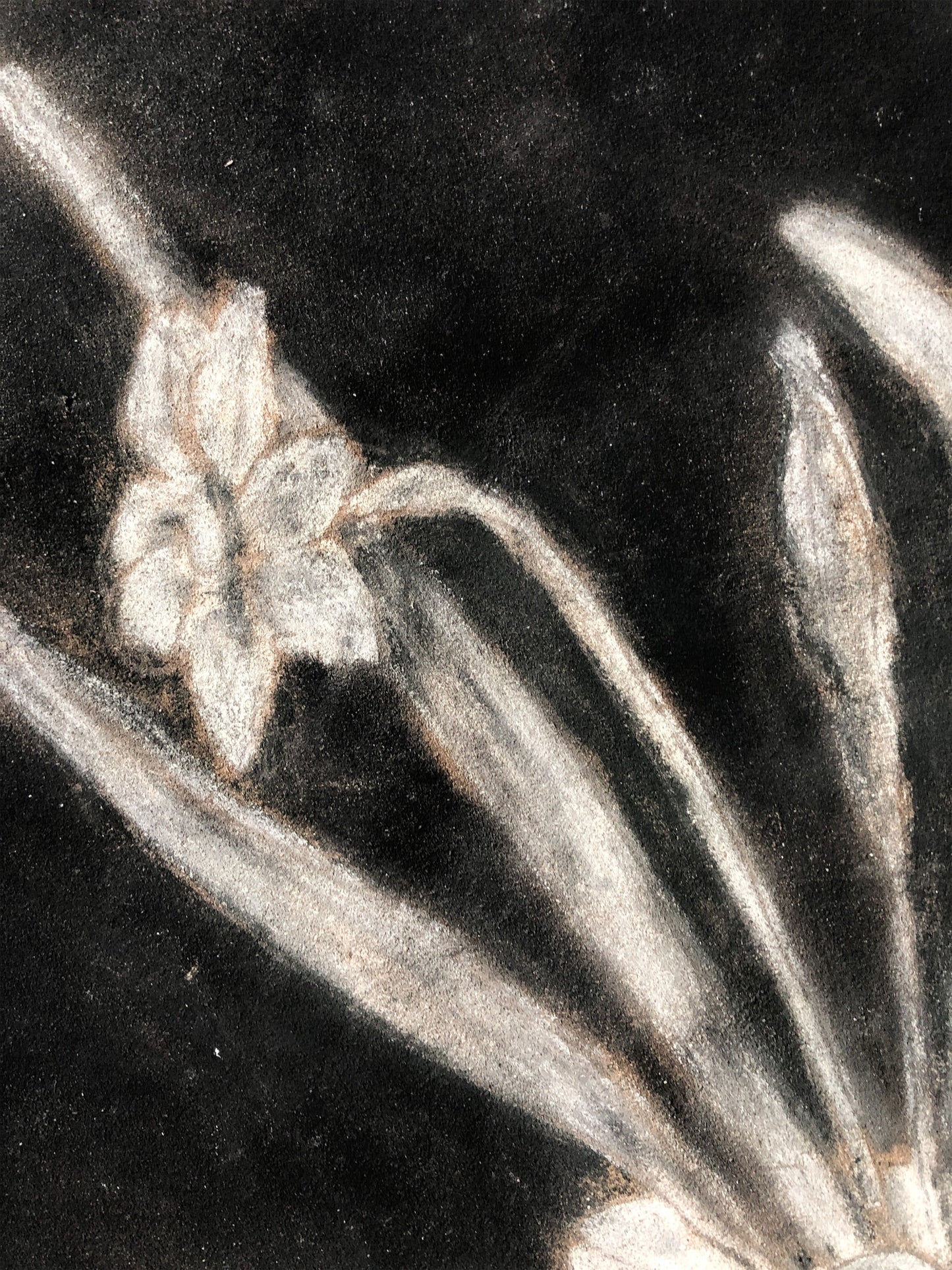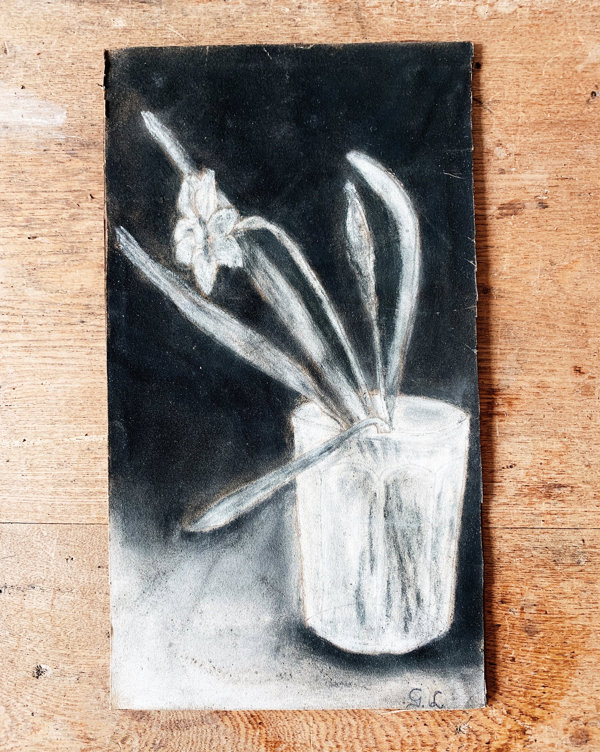 Lovely, moody vintage charcoal drawing in simple vintage wood frame. Hard to let this one go.