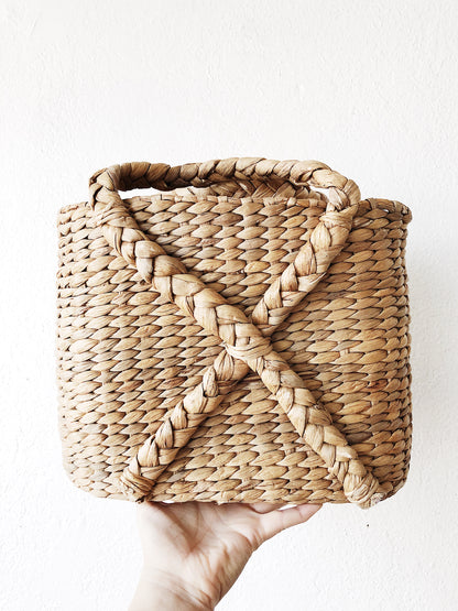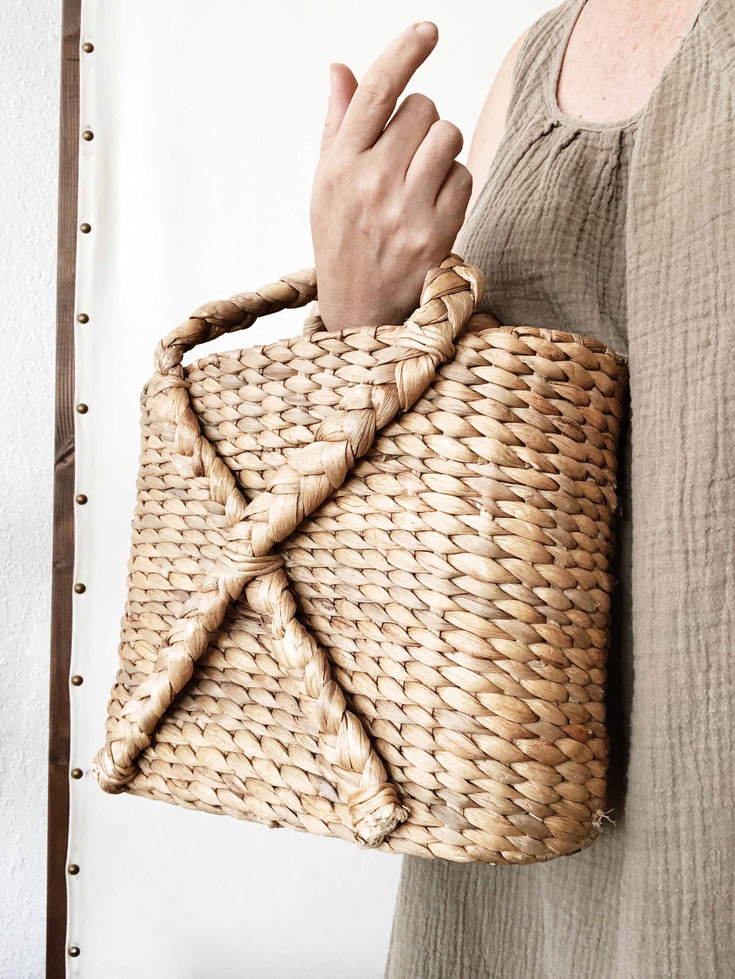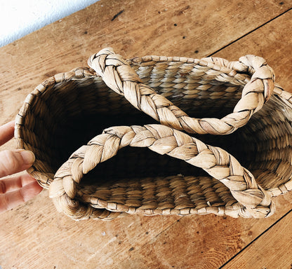 Great old straw tote with a chunky frame. Love the braid detail. Nice for toting a lunch or personal necessities