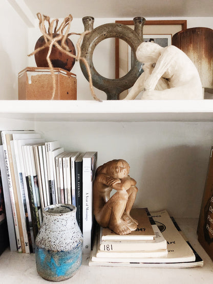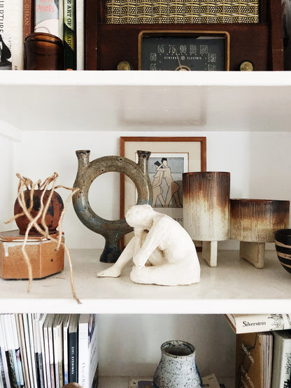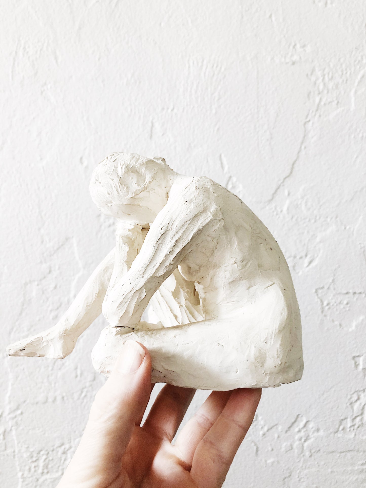 Beautiful clay / plaster sculpture. Very emotive and serene. Lovely bookend