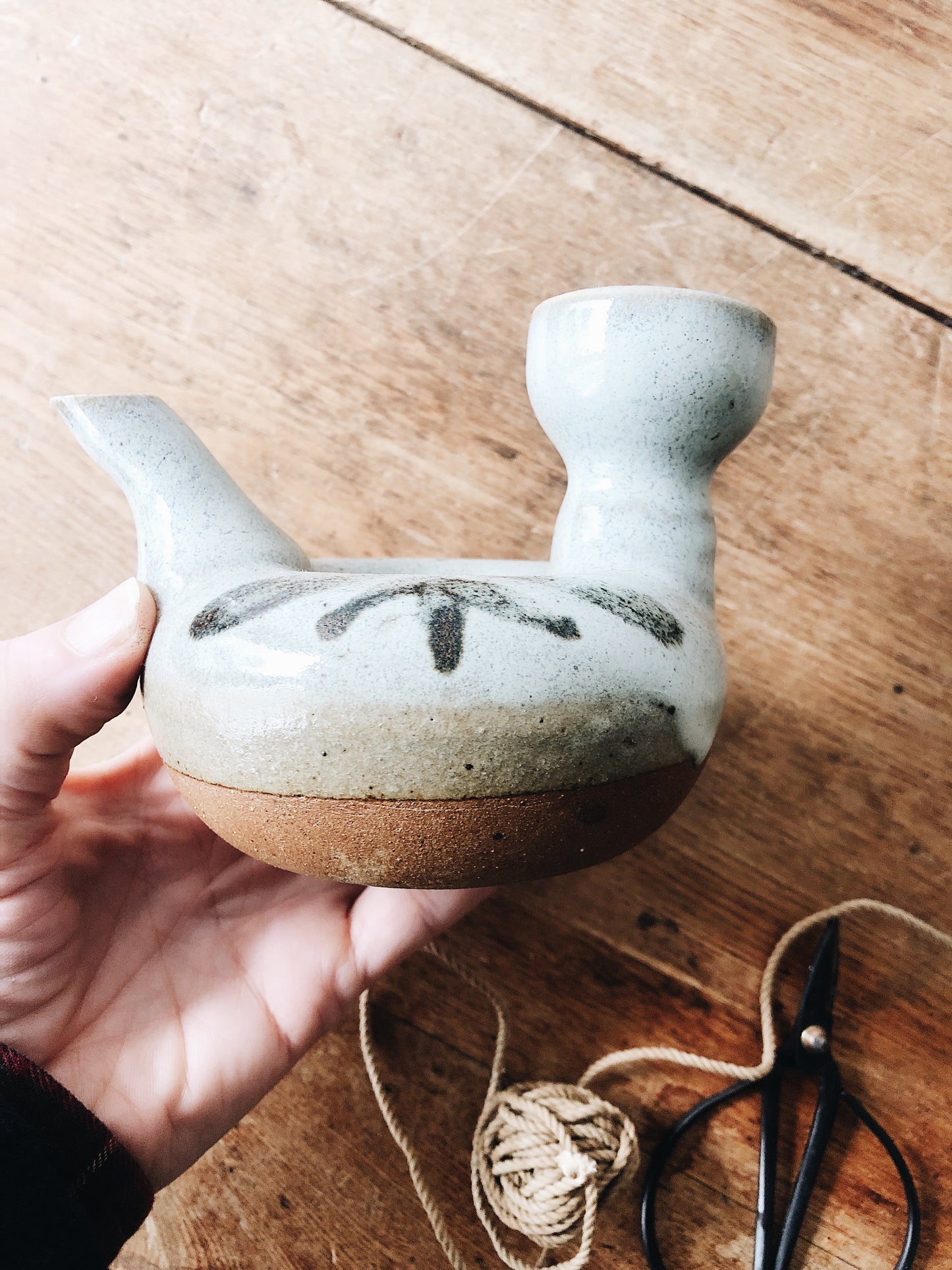 A smaller sized clay pipe from India. Lovely shape. We adore using these to water house plants or for sundries too