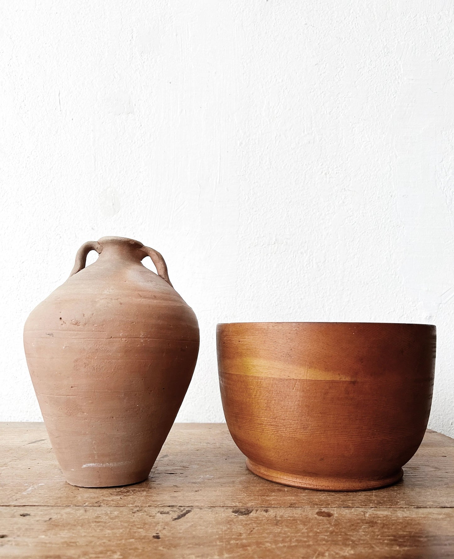 Natural unglazed clay urn/ vase. Wood fired markings on top. Lovely as a vase or displayed as is.