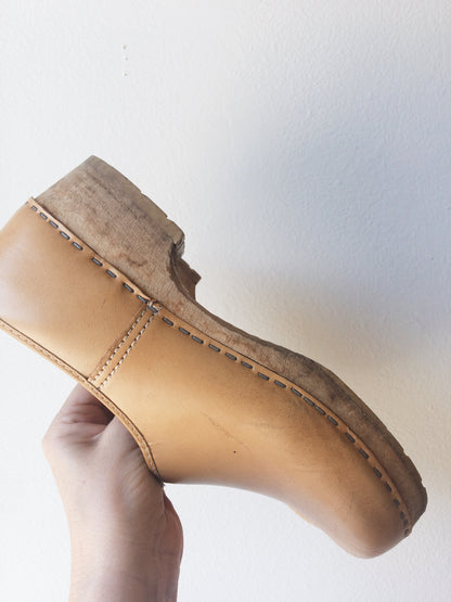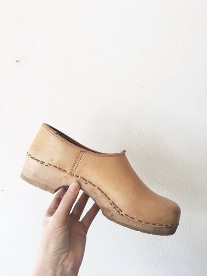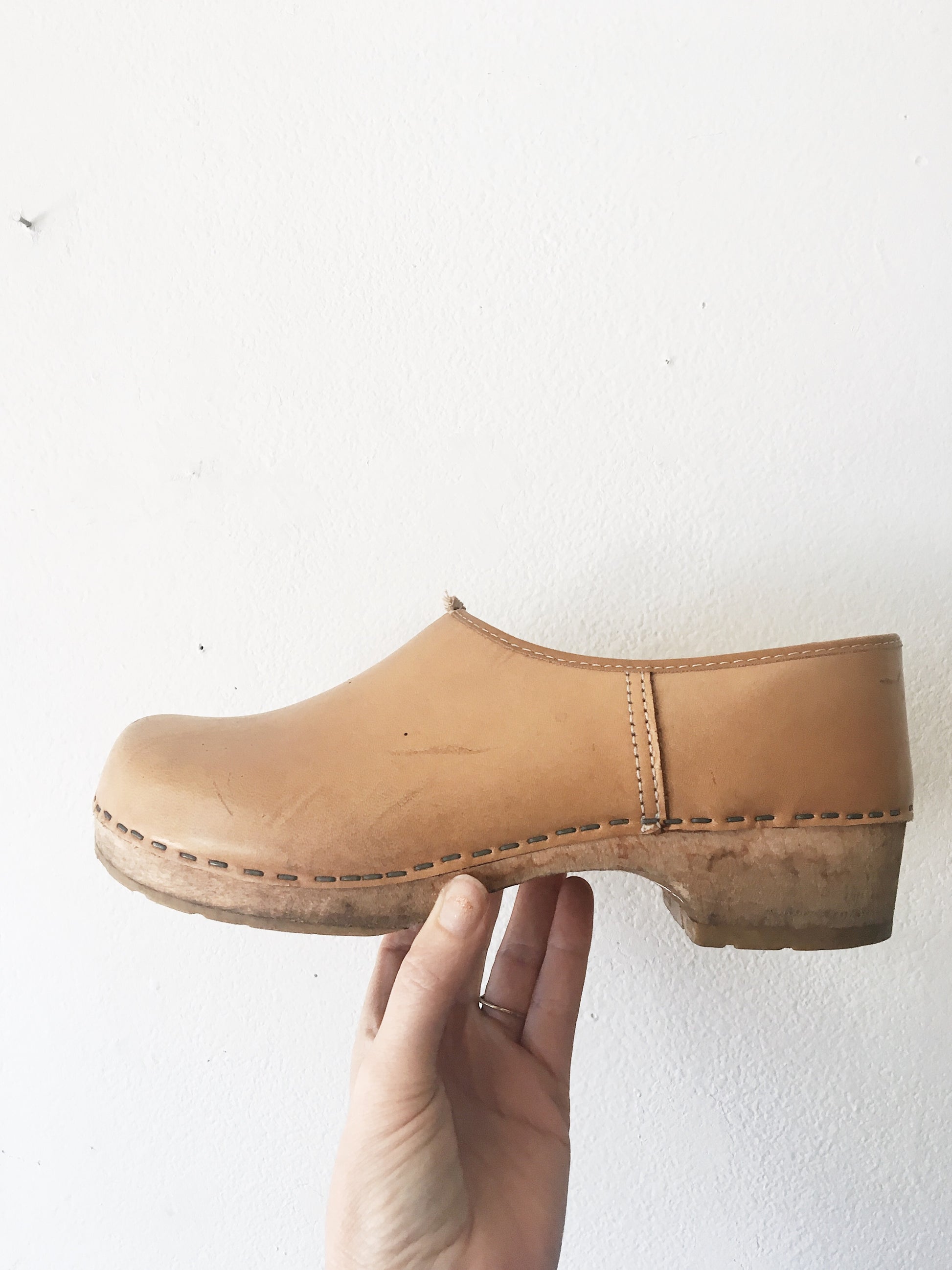 Lovely old clogs with years of life left. They have some dings and scratches. One small cut on one. See photos.