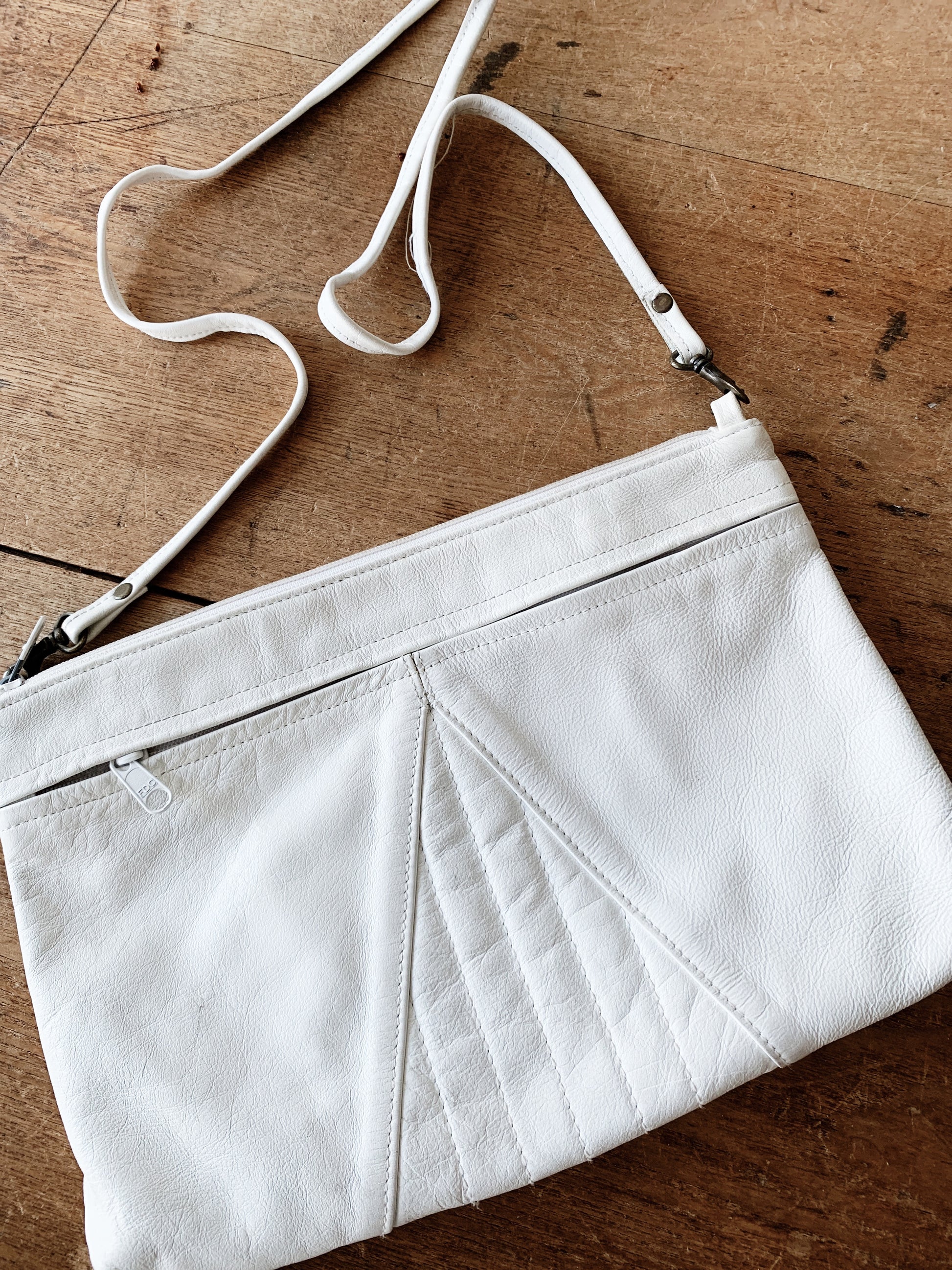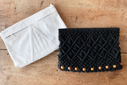 Choose between white leather or black macrame. Both so good! And in great condition. White leather has removable strap