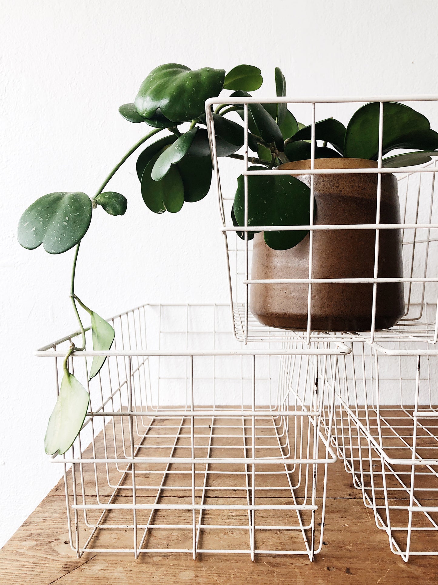 Simple and pretty. Vintage coated metal locker basket. Use for storage or arrange them on the wall for a modular shelving system.
