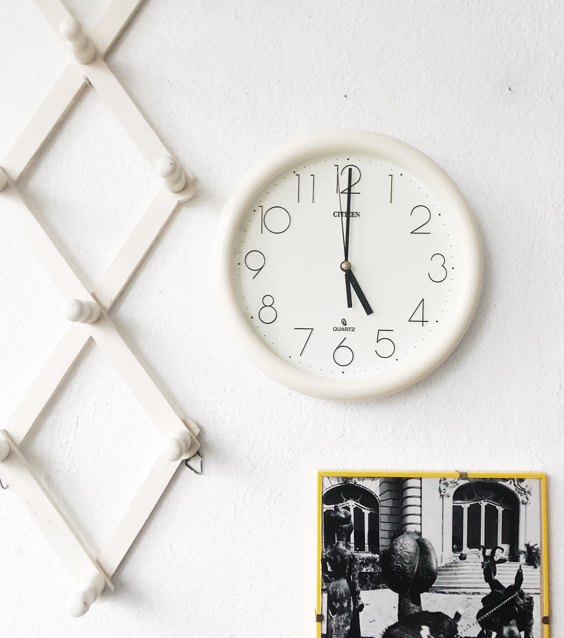 We love the style of this kitchen clock...reminds us very much of our idol Terrance Conran. The eighties at its best. Battery operated