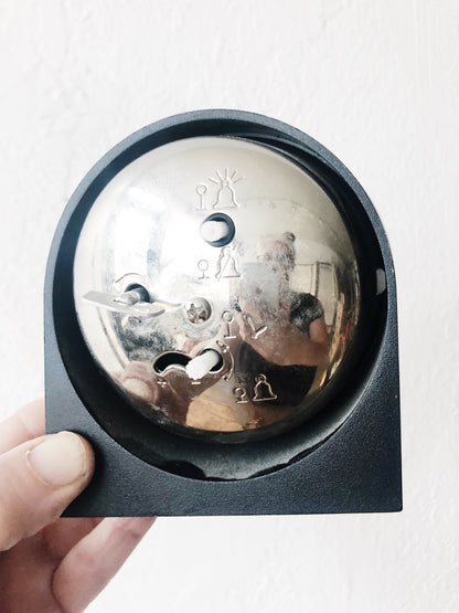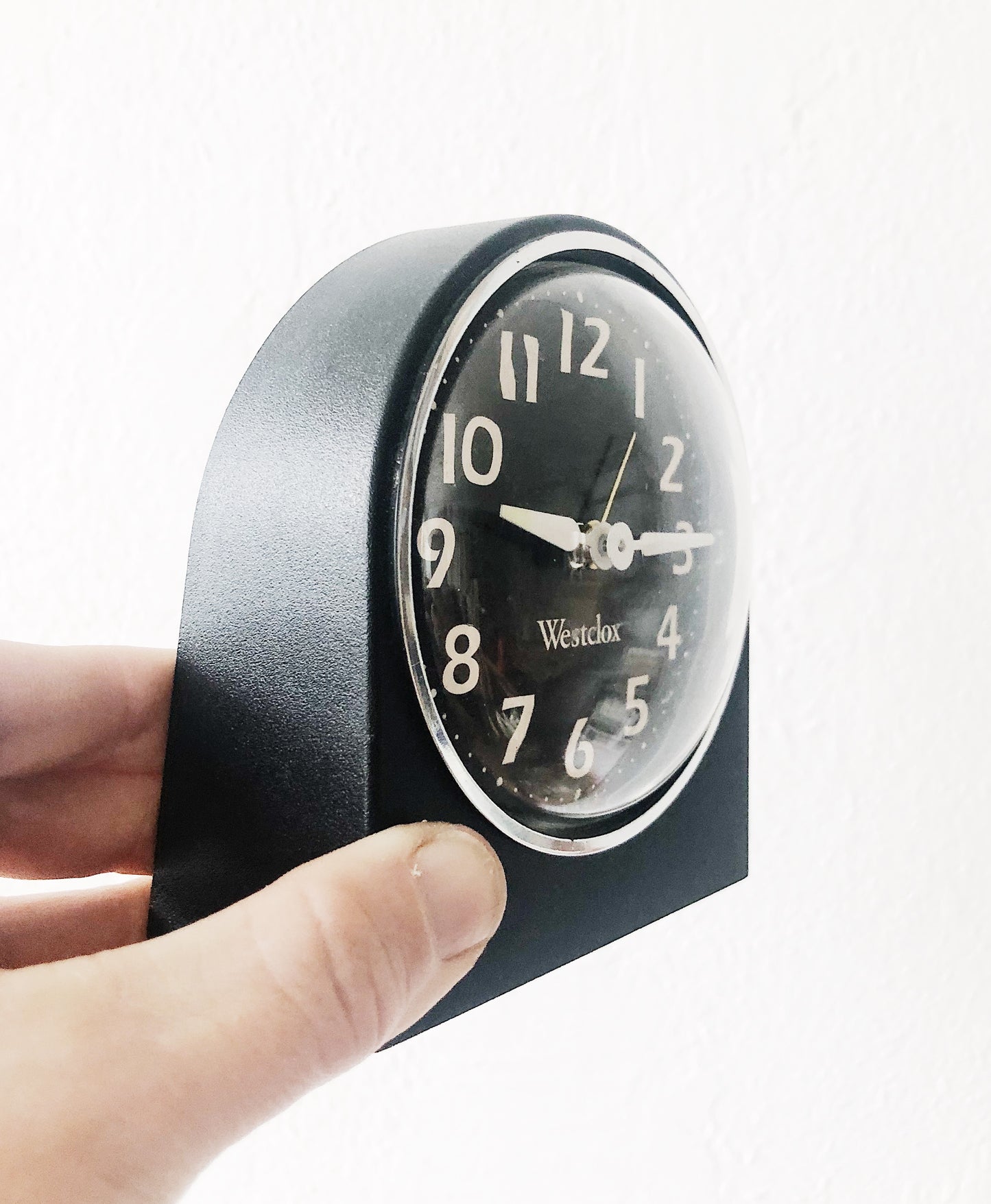 Such a cool design. Convex glass, wind up mechanism, alarm set. Made in the USA. Works great!