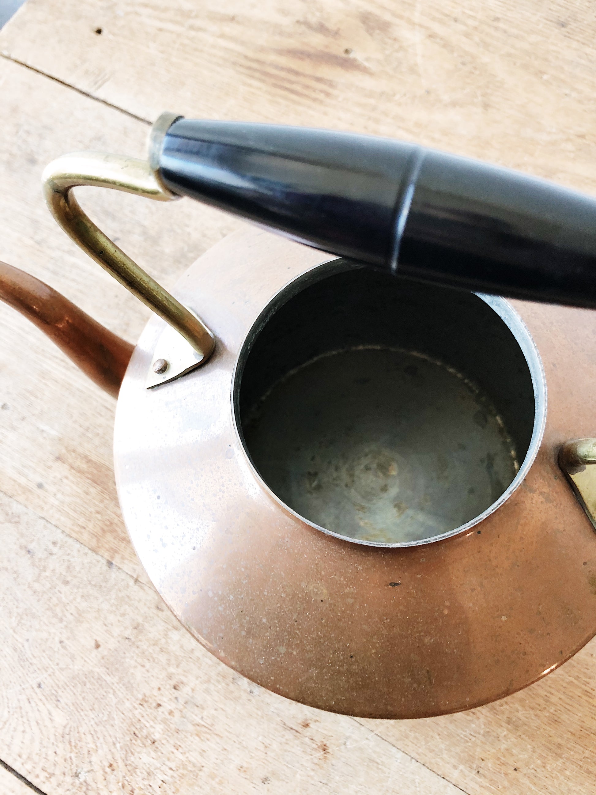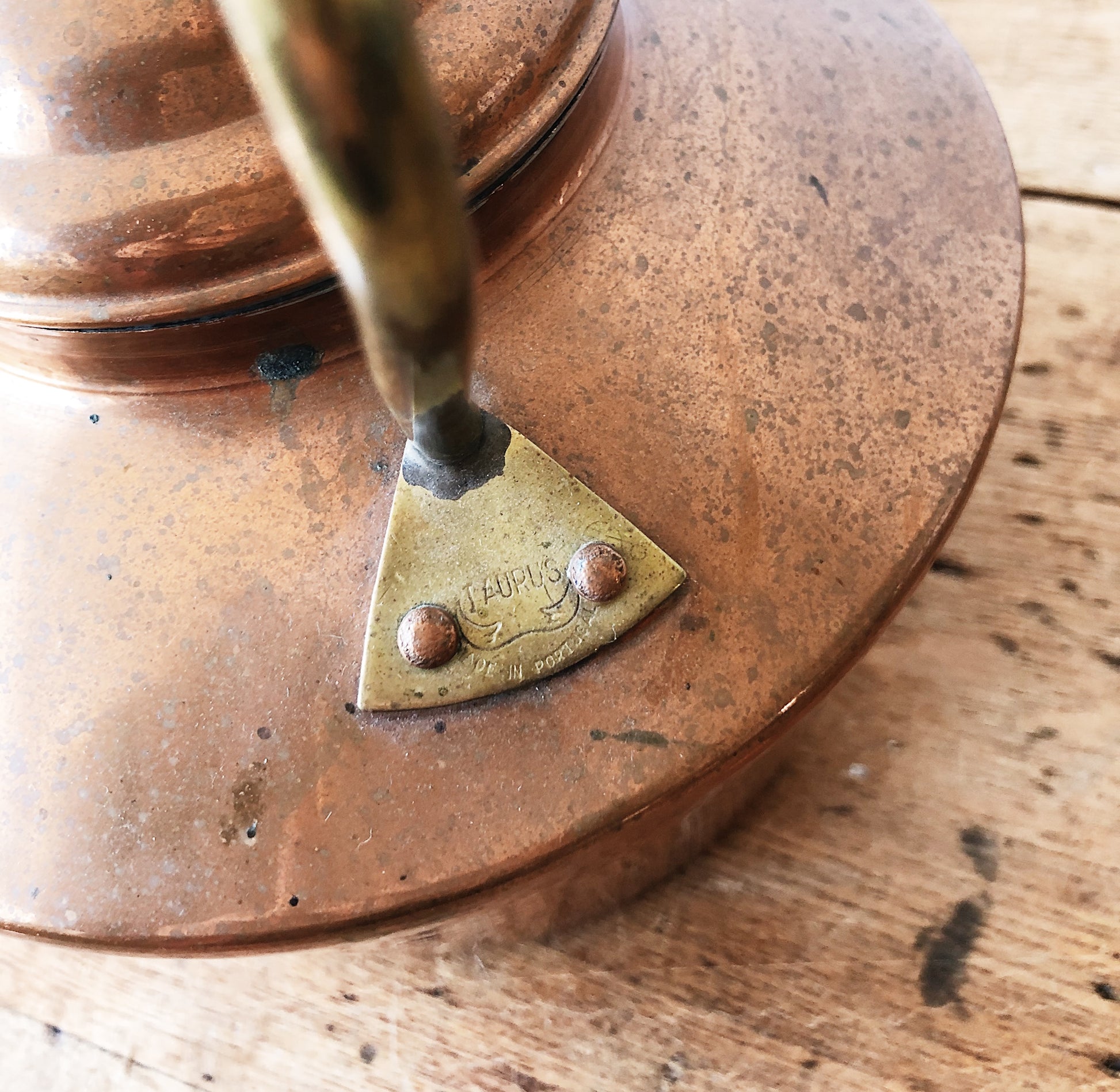A nicely sized copper clad kettle by Taurus of Portugal. Clean insides with just some touches of the copper coming through the clad. Lovely condition