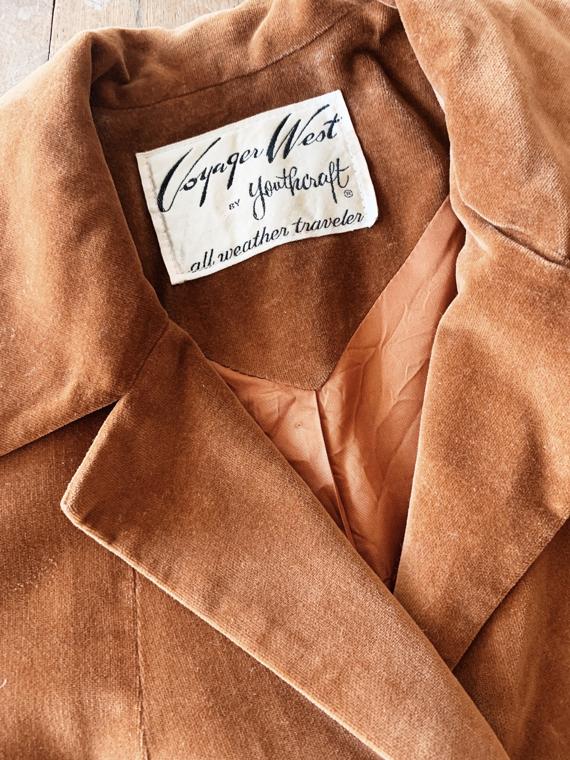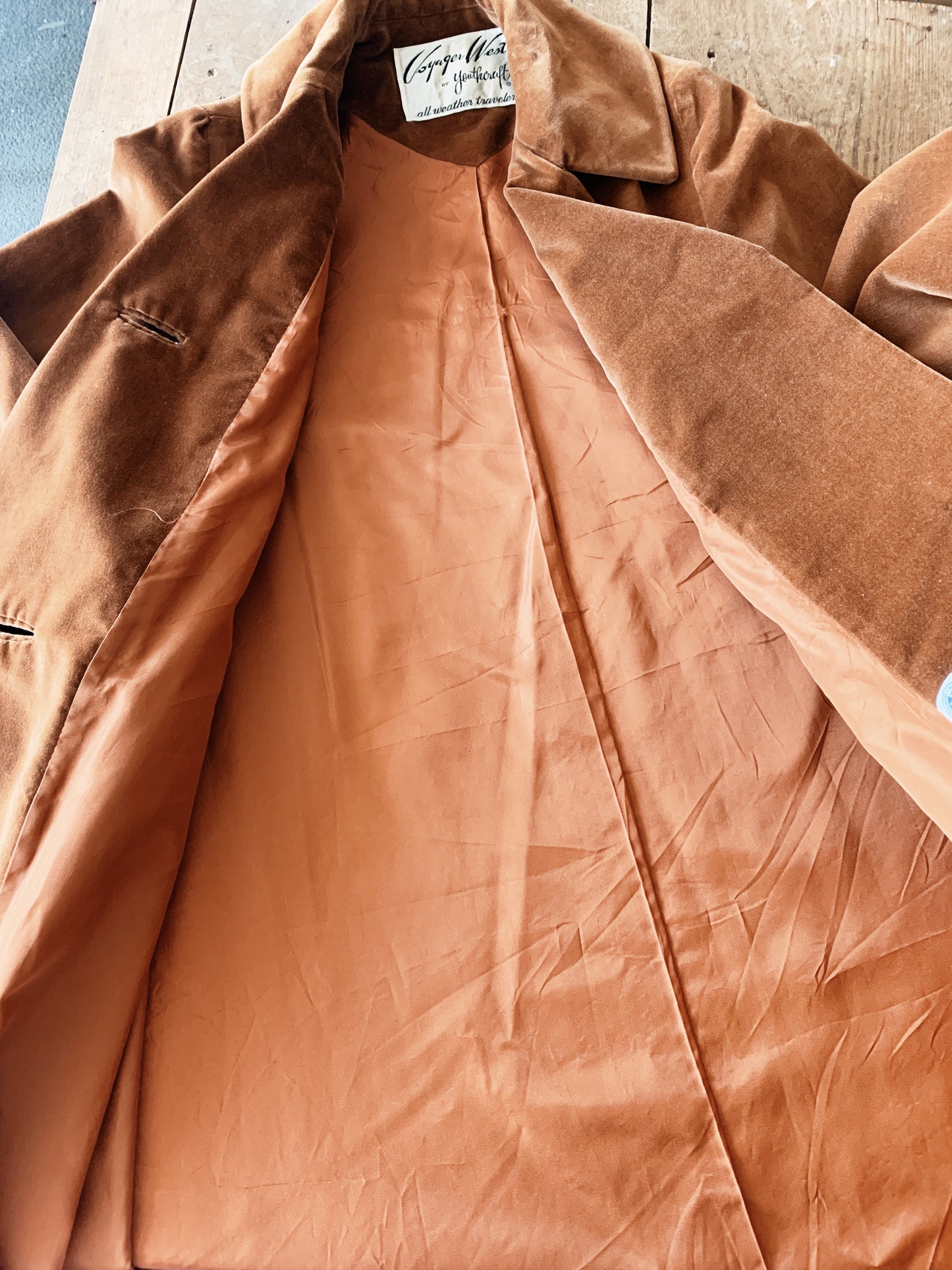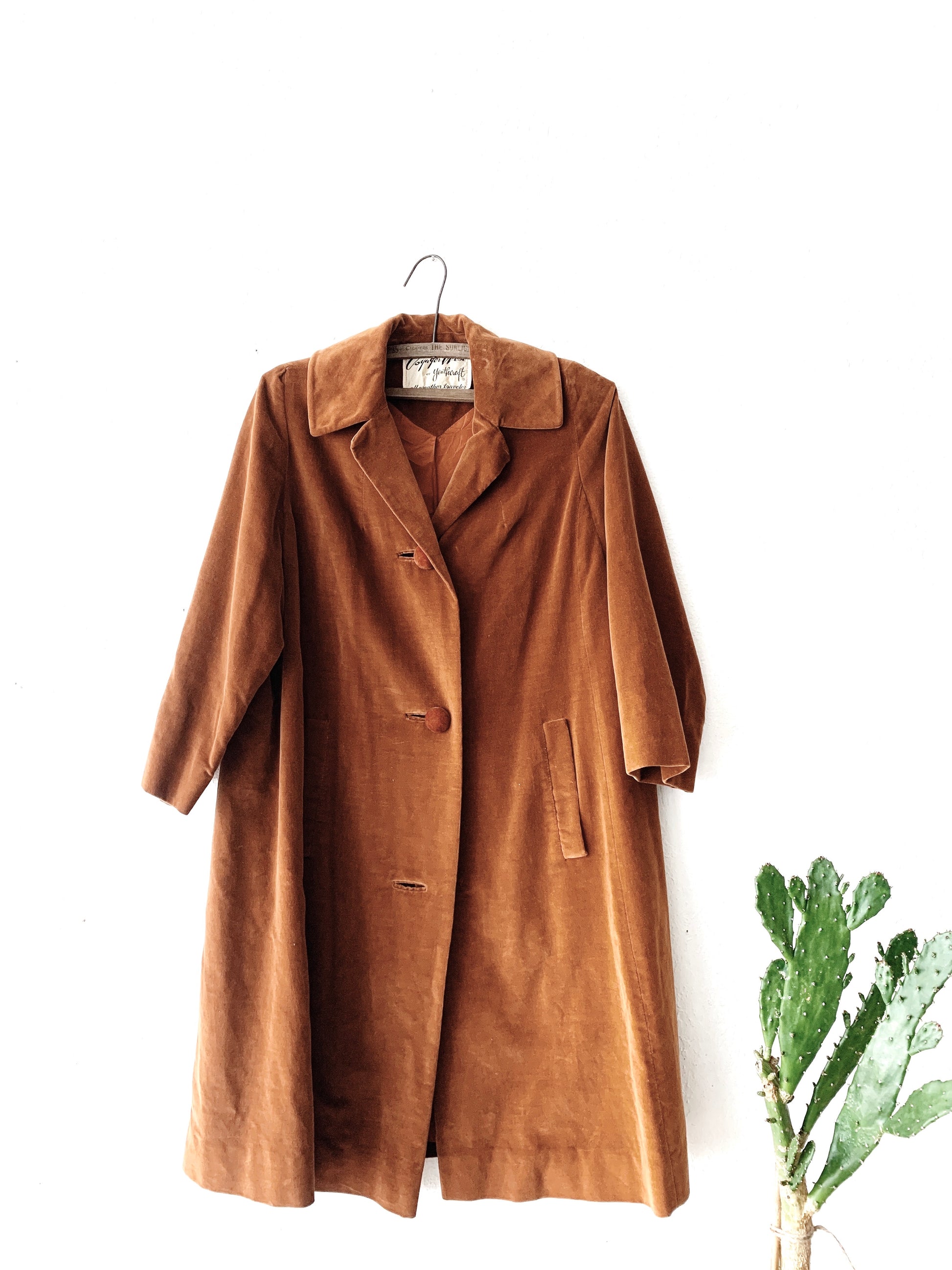 copper velvet swing coat with 3/4 sleeves FABULOUS