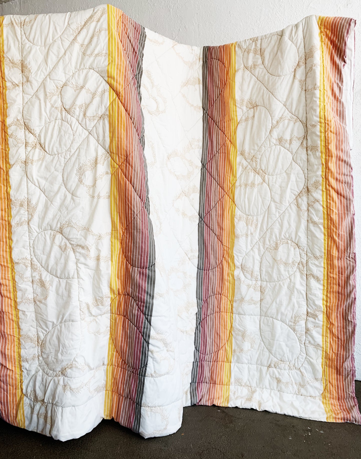 Super soft mid weight vintage bedspread. Queen size, overall in really nice condition. Found a few very small and insignificant spots, back is solid cream. In clean condition ! Very 1970’s.