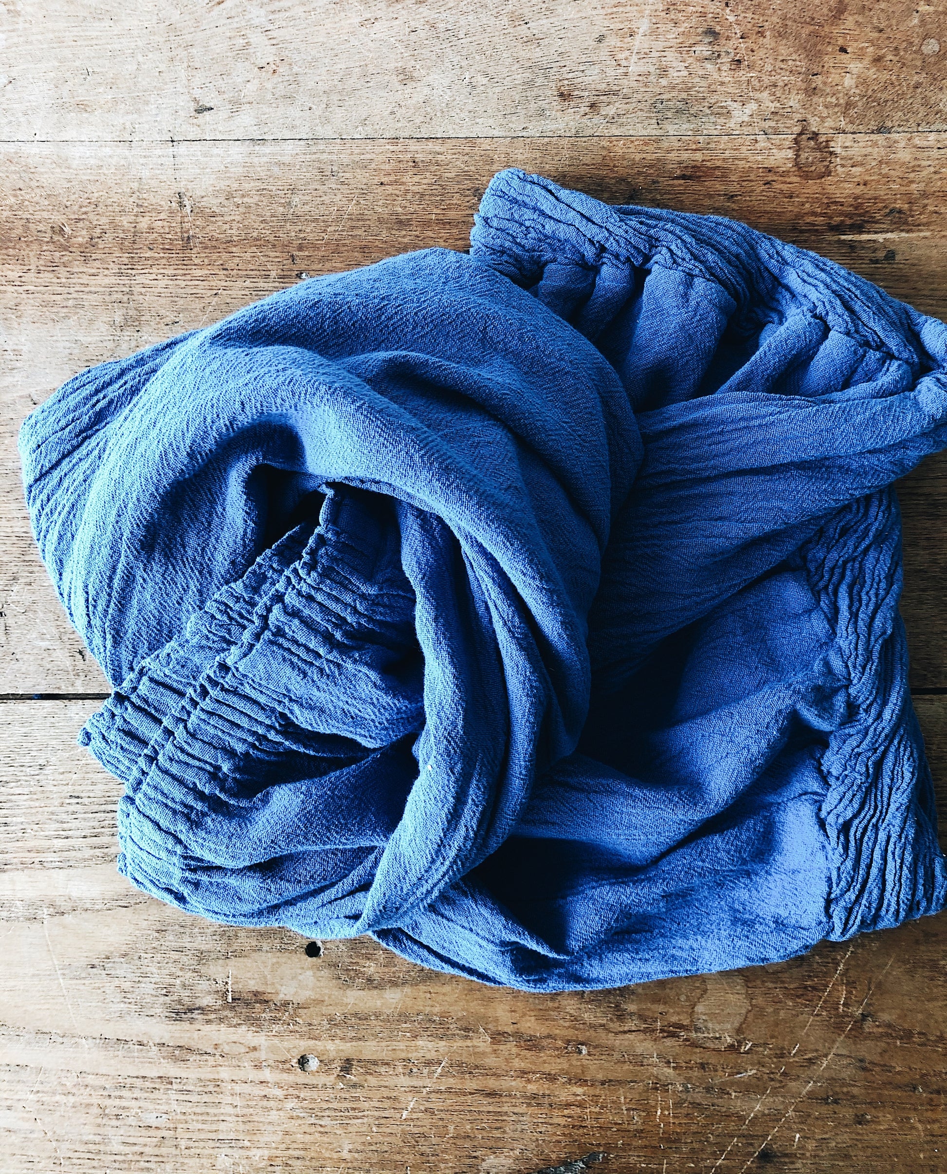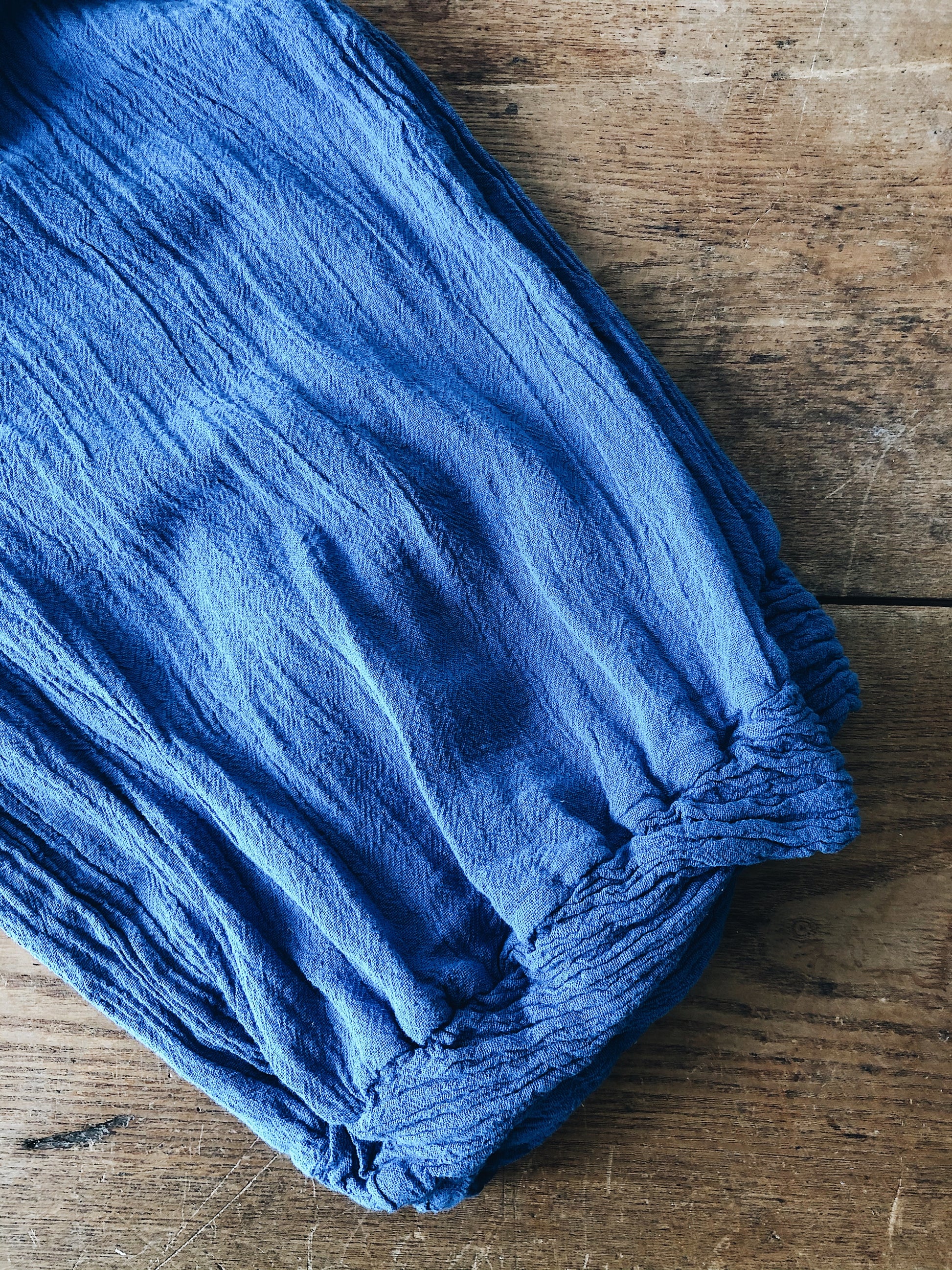 Loose elastic waist cotton crop pant by Oh My Gauze! Cobalt blue. Great twisted hem. Perfect beach pants