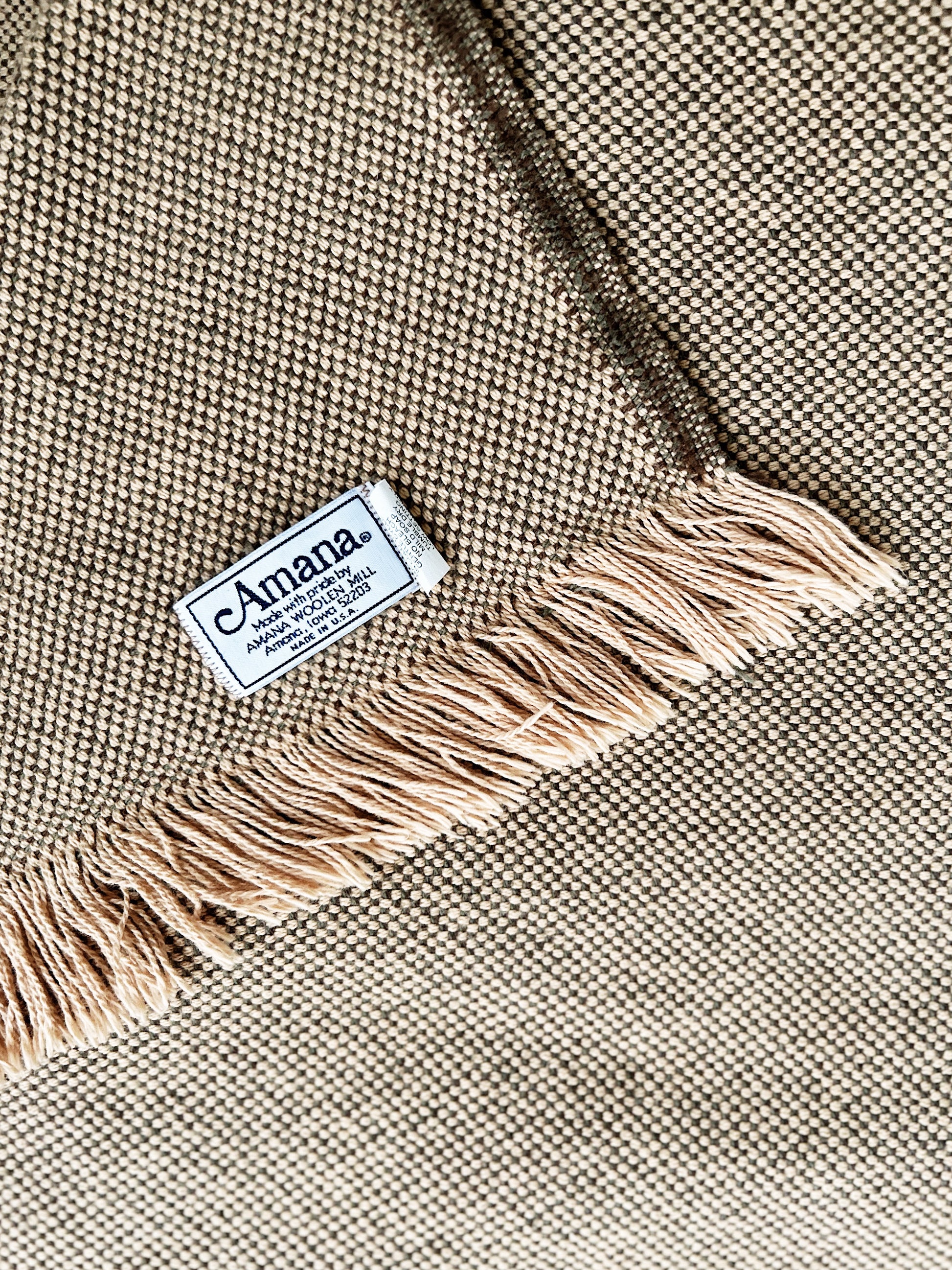 Nice vintage cotton throw in a handwoven pattern. Amana blankets were made in the USA and classics. This throw blanket is super soft and cozy for all seasons