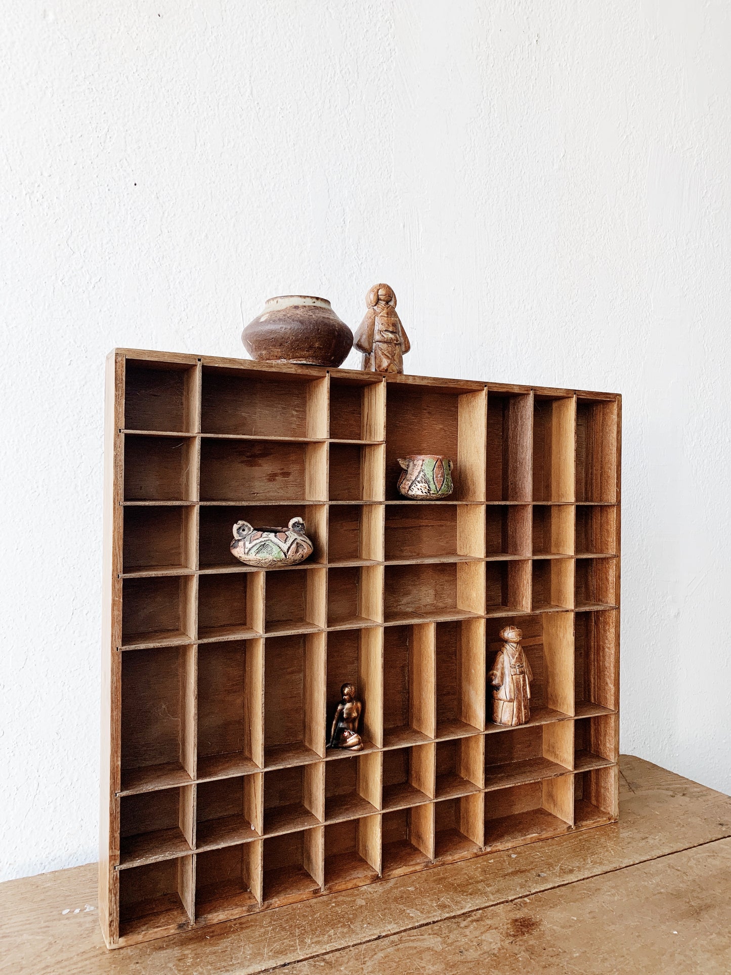 Sweet vintage curio wall shelf with hangers on back. I see this filled with rocks, crystals and other small collections! Nice size at 21x18”
