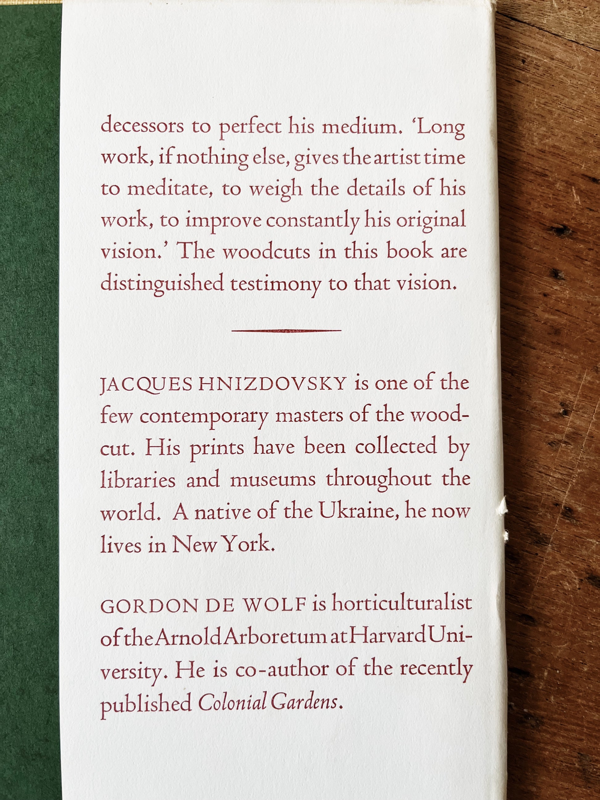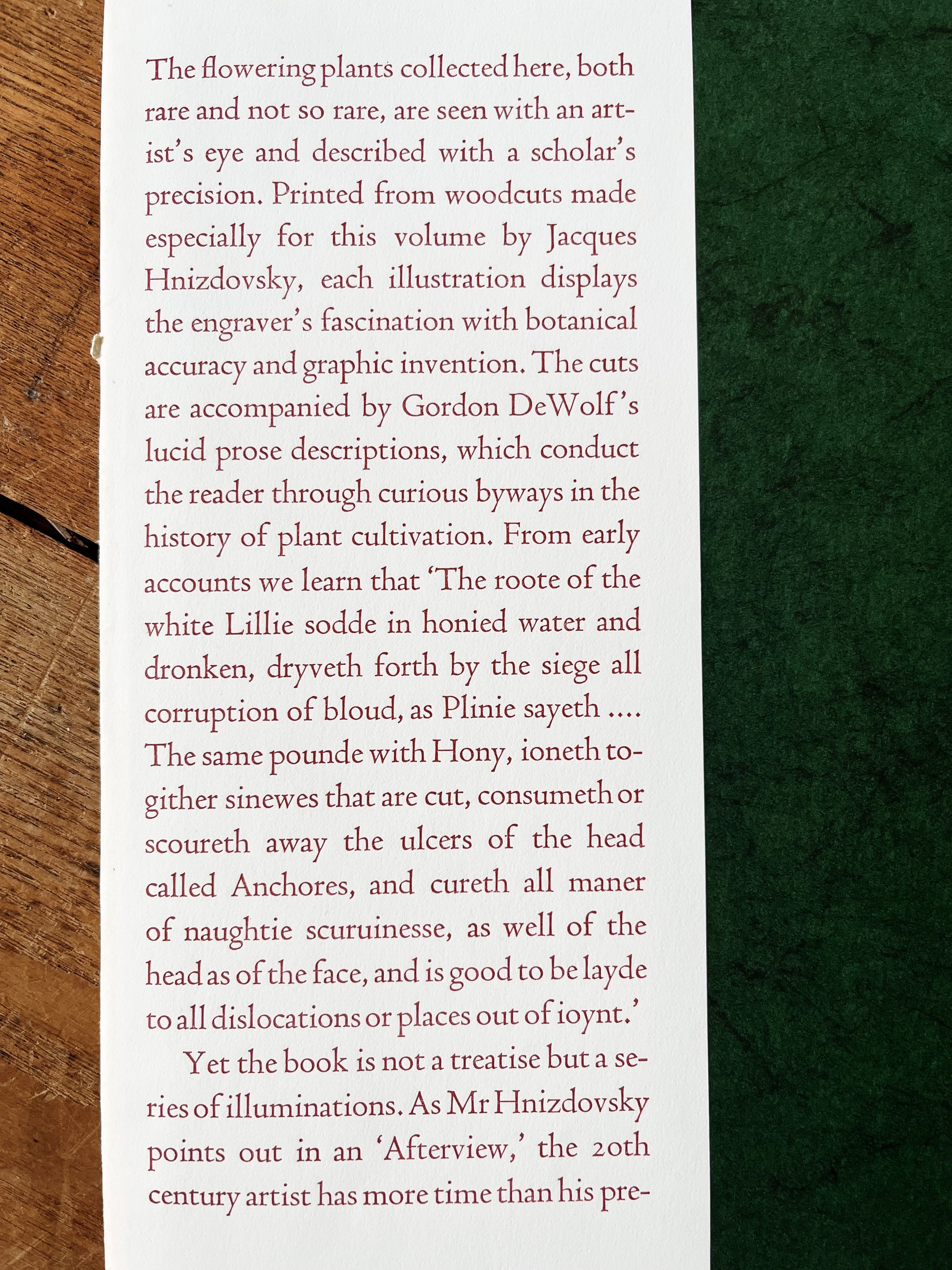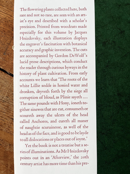 Rare book of Czechoslovakian floral woodcuts from 1972 by artist Jacques Hnizdovsky. Originally printed in a limited edition of 3500 bound print collections. The woodcuts have strong plate marks and gorgeous coloration. On medium weight warm white paper and suitable for framing.