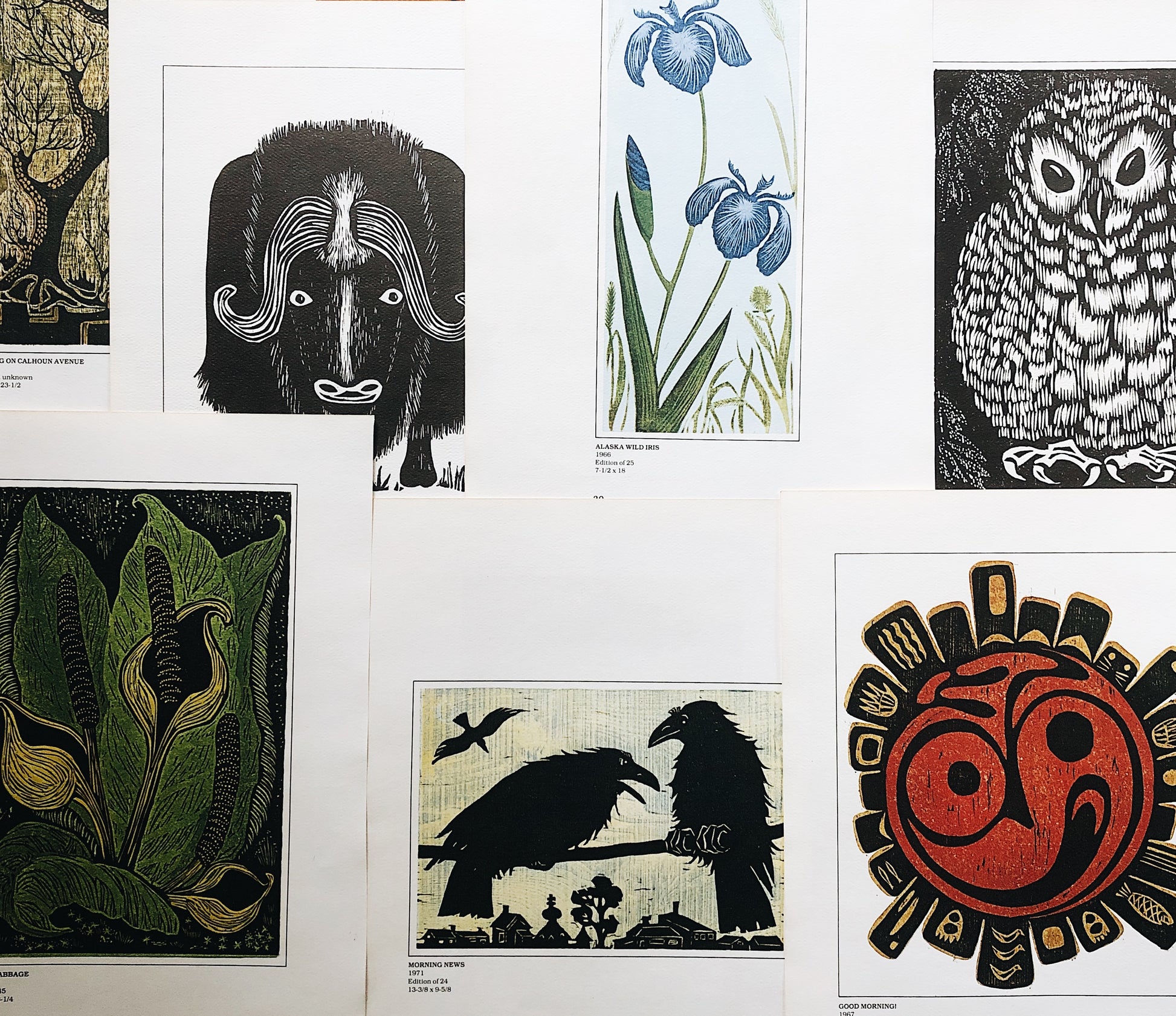 Lovely prints from Dale De Ormond, an Alaskan artist in the mid century. These are vintage prints of her original creations from the 60s and 70s.