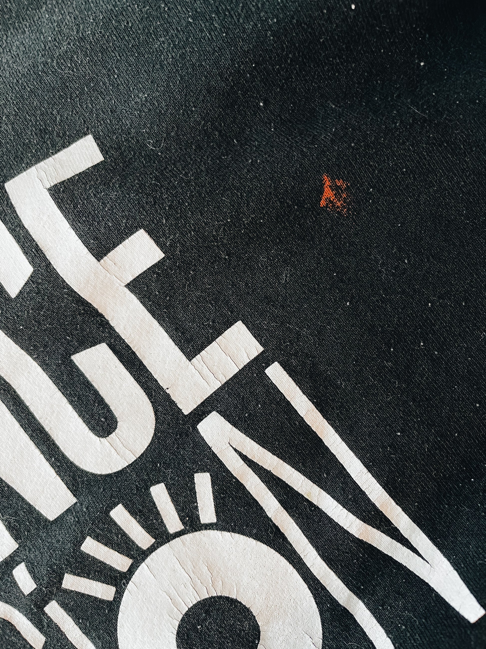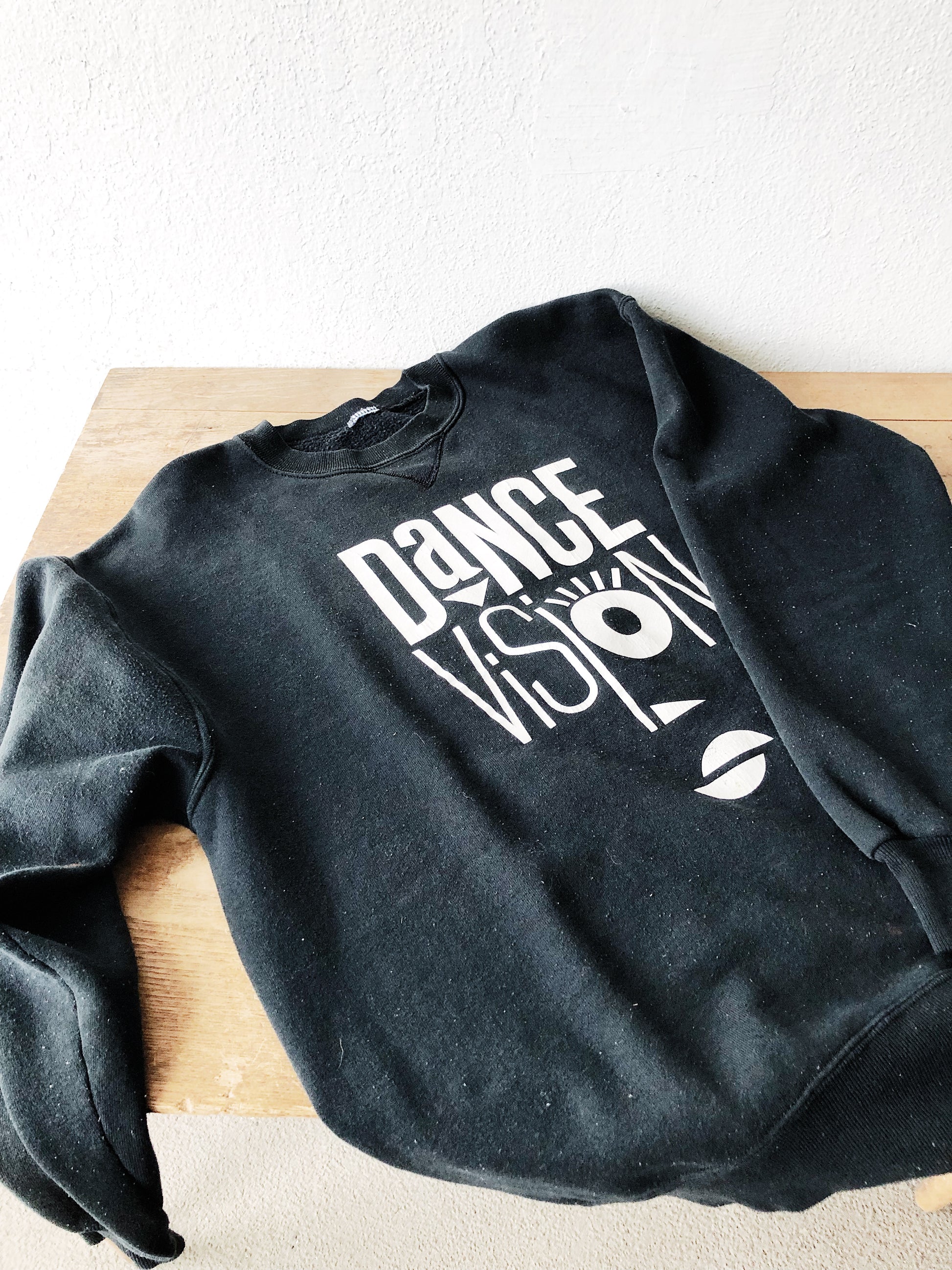 Vintage Russell athletic in black, white Dance Vision logo. Soft and broken in. Some minor pulling and a few little red marks