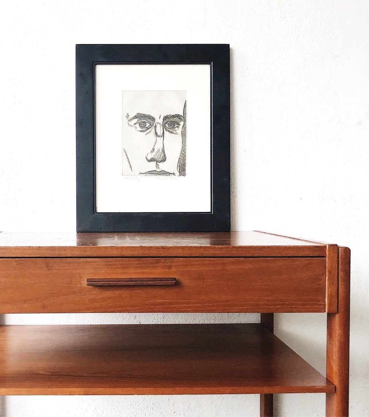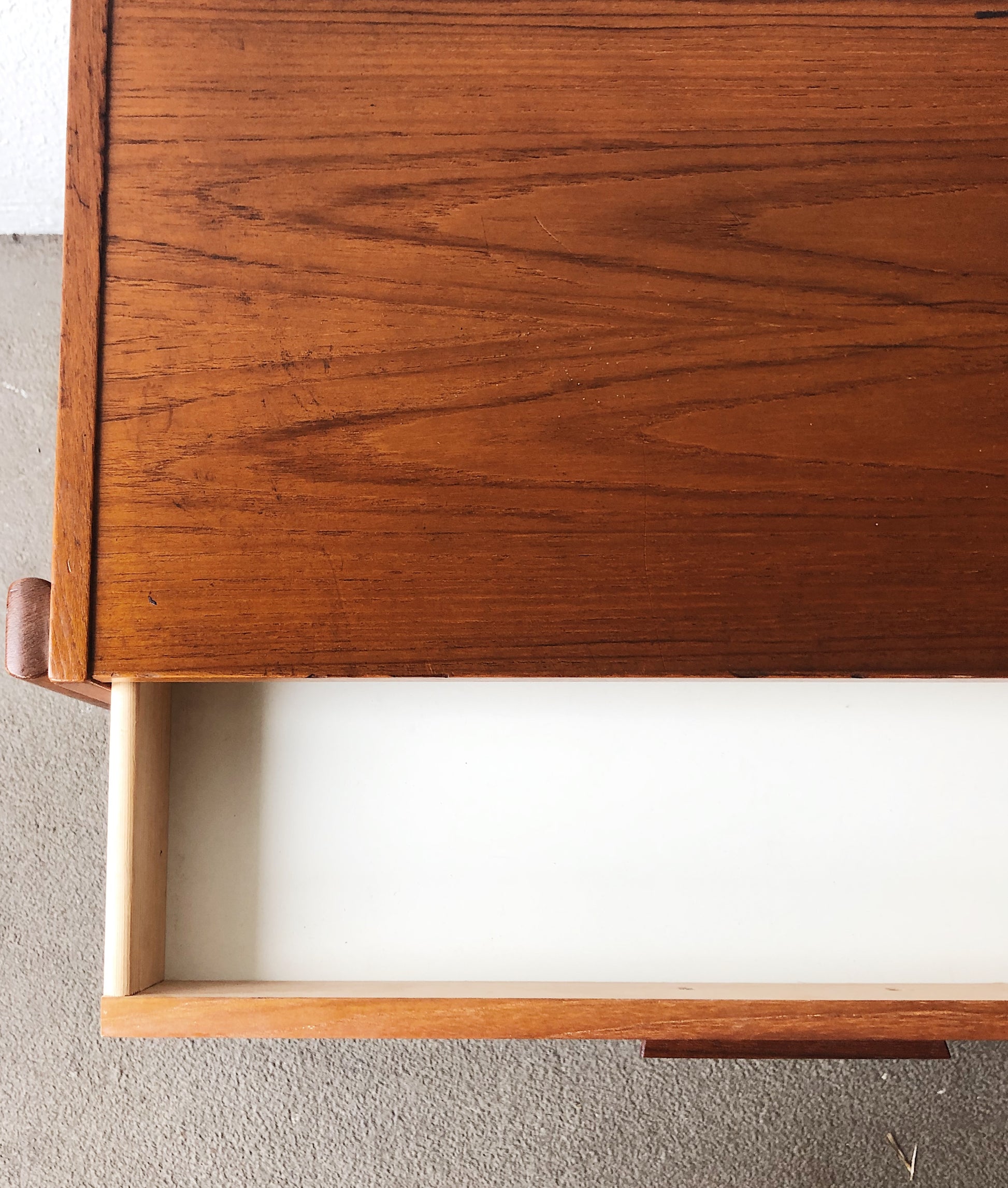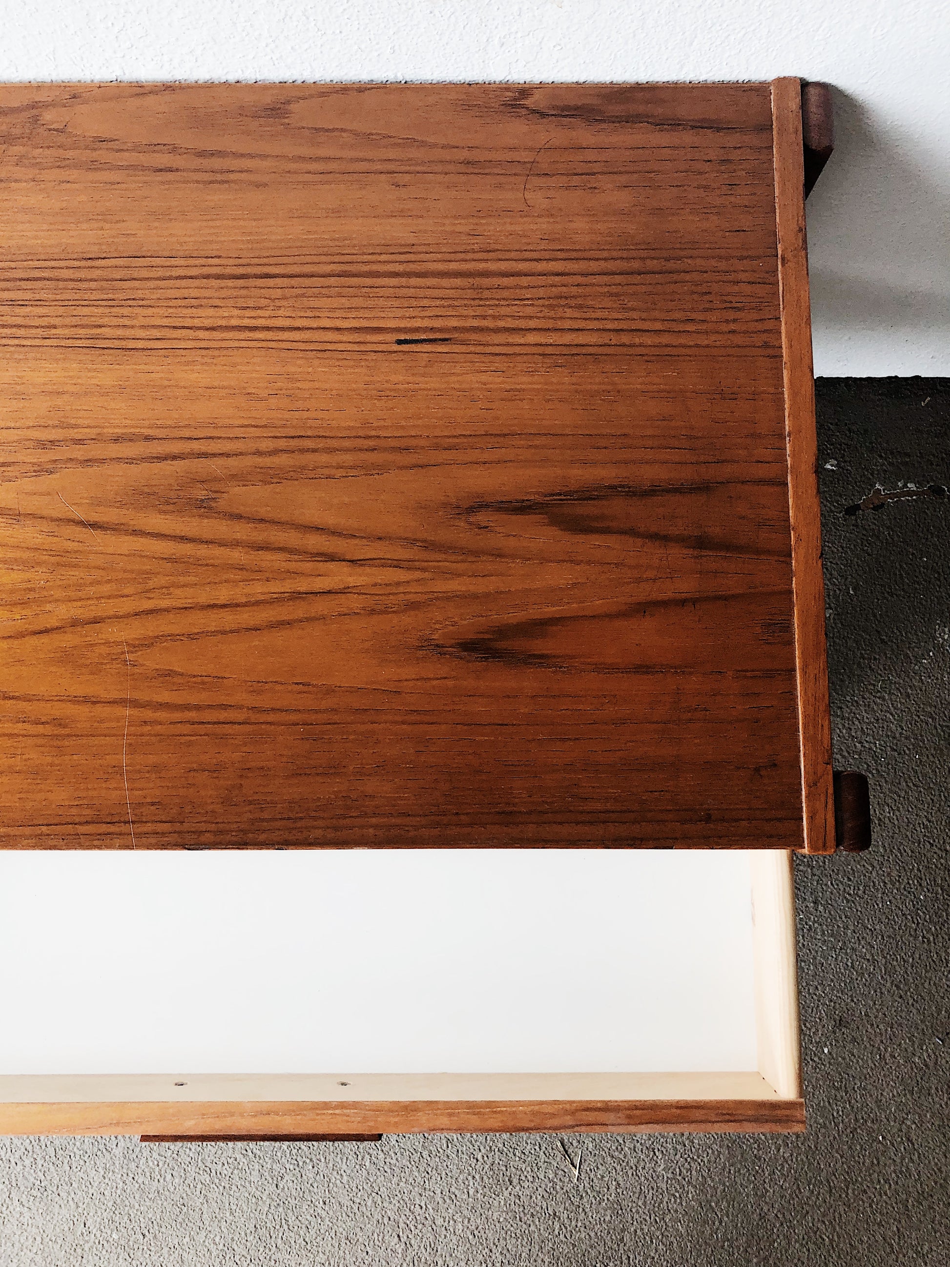 Useful mid sized teak rolling cart with single drawer. Beautiful Danish modern style. On casters
