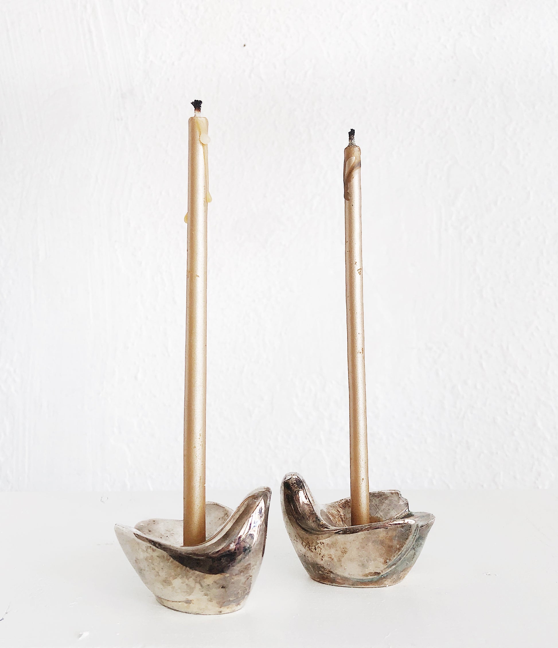A pair of Sweet little Dansk dove candle holders. Included are the tiny gold tapers