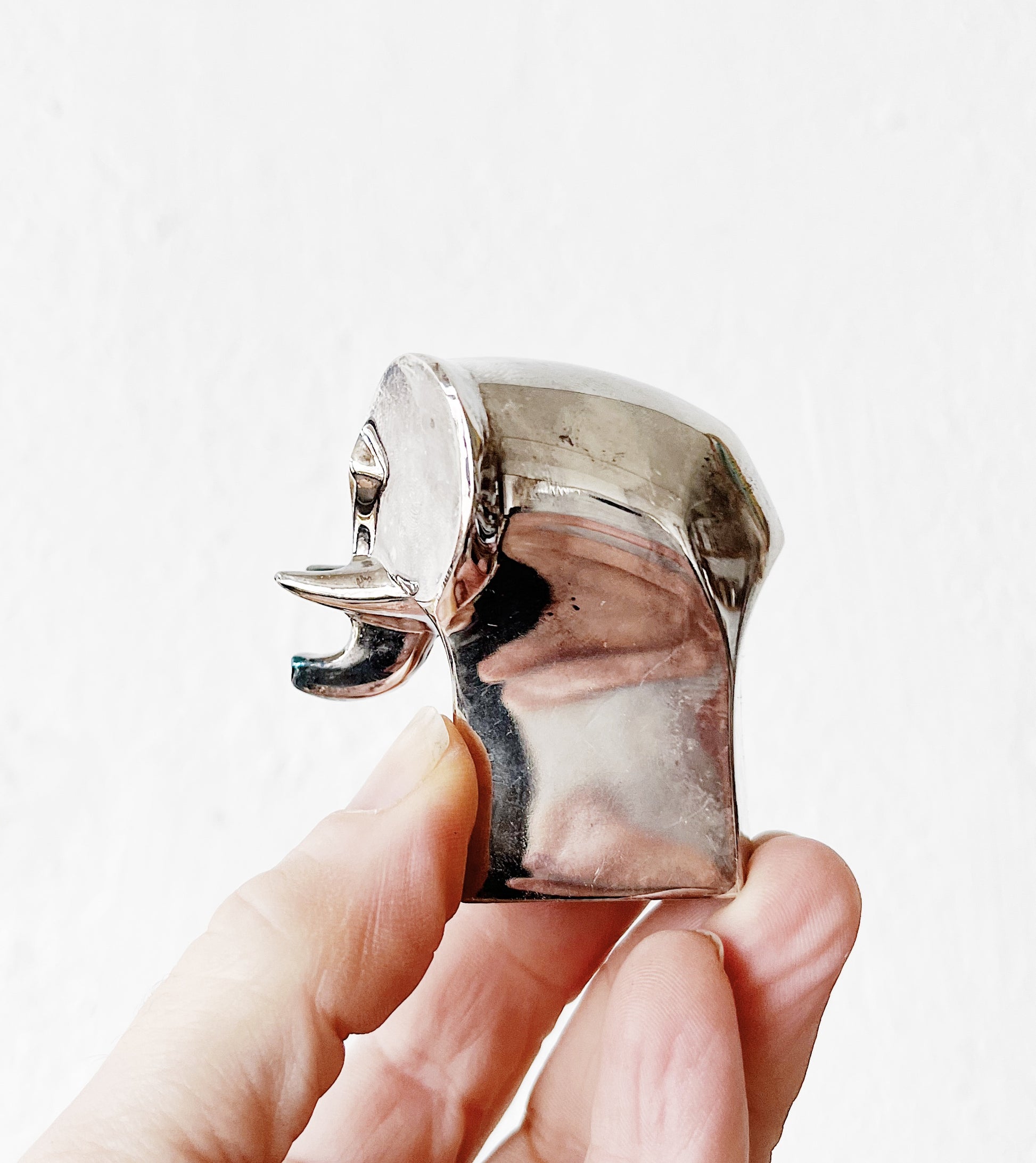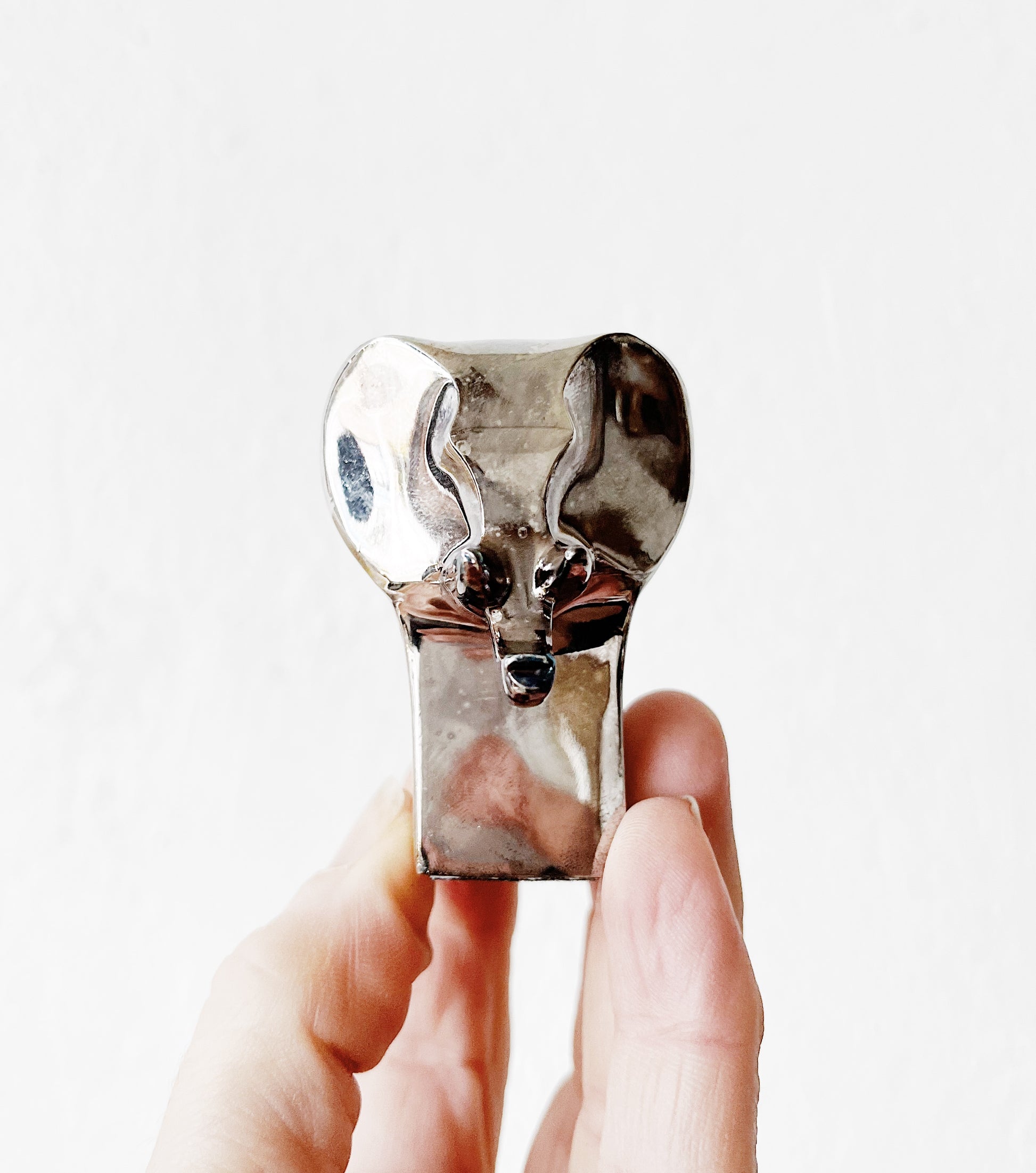 Part of Dansk’s vintage animal collection. This silverplated antelope is a nice modernist touch amongst other mid century decor. Very weighty for its size. Use it as a paperweight or to display