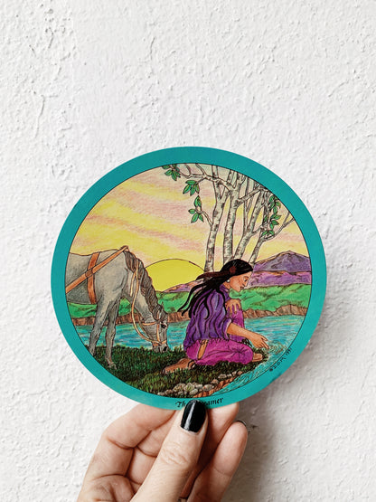 Daughters of the moon was originally the Matriarchal Tarot, conceived in 1976. Many sources of feminist thought, art and music have been used as guides.