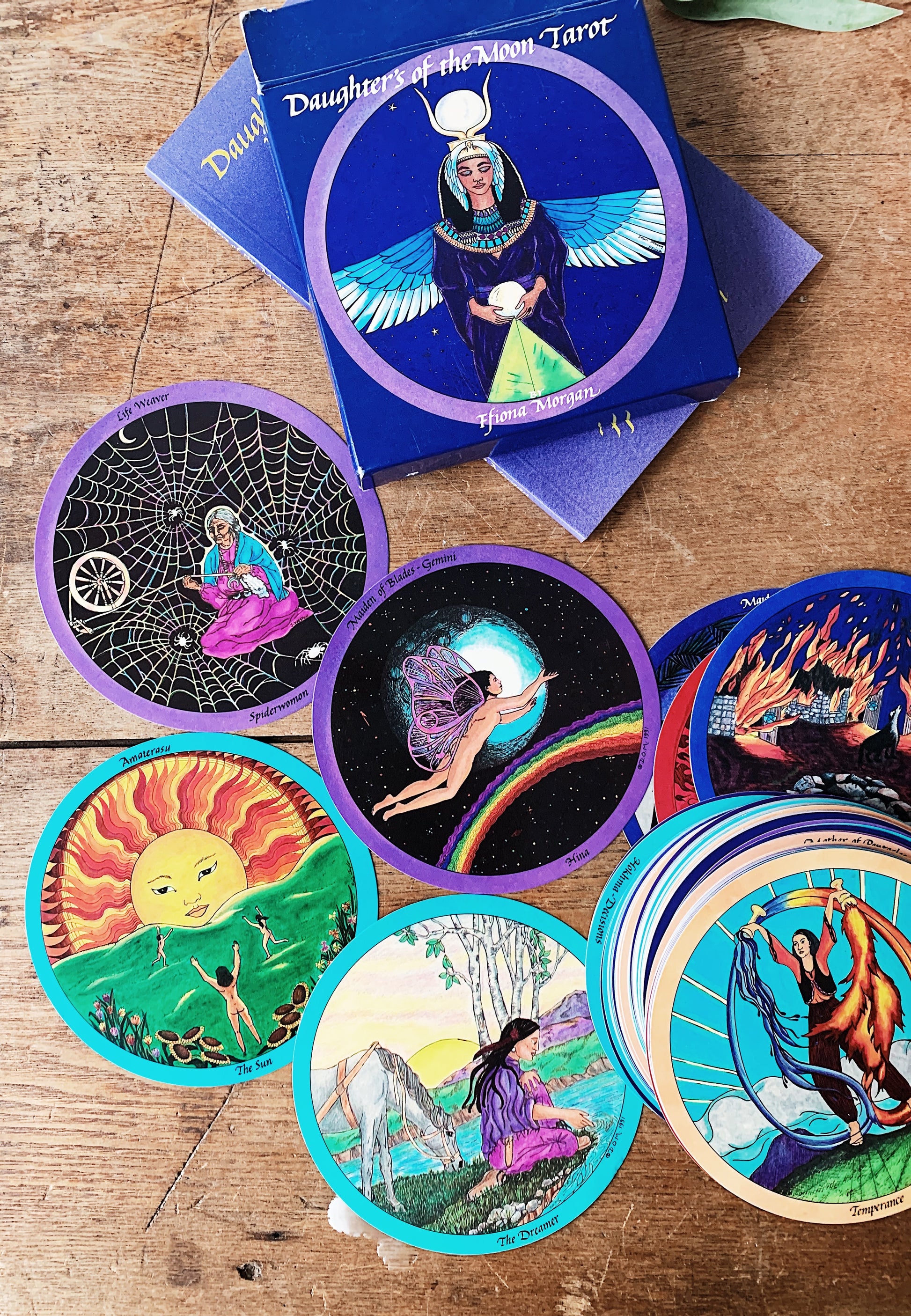 Vintage 1990’s Daughter’s of the Moon Tarot Deck and corresponding guidebook.