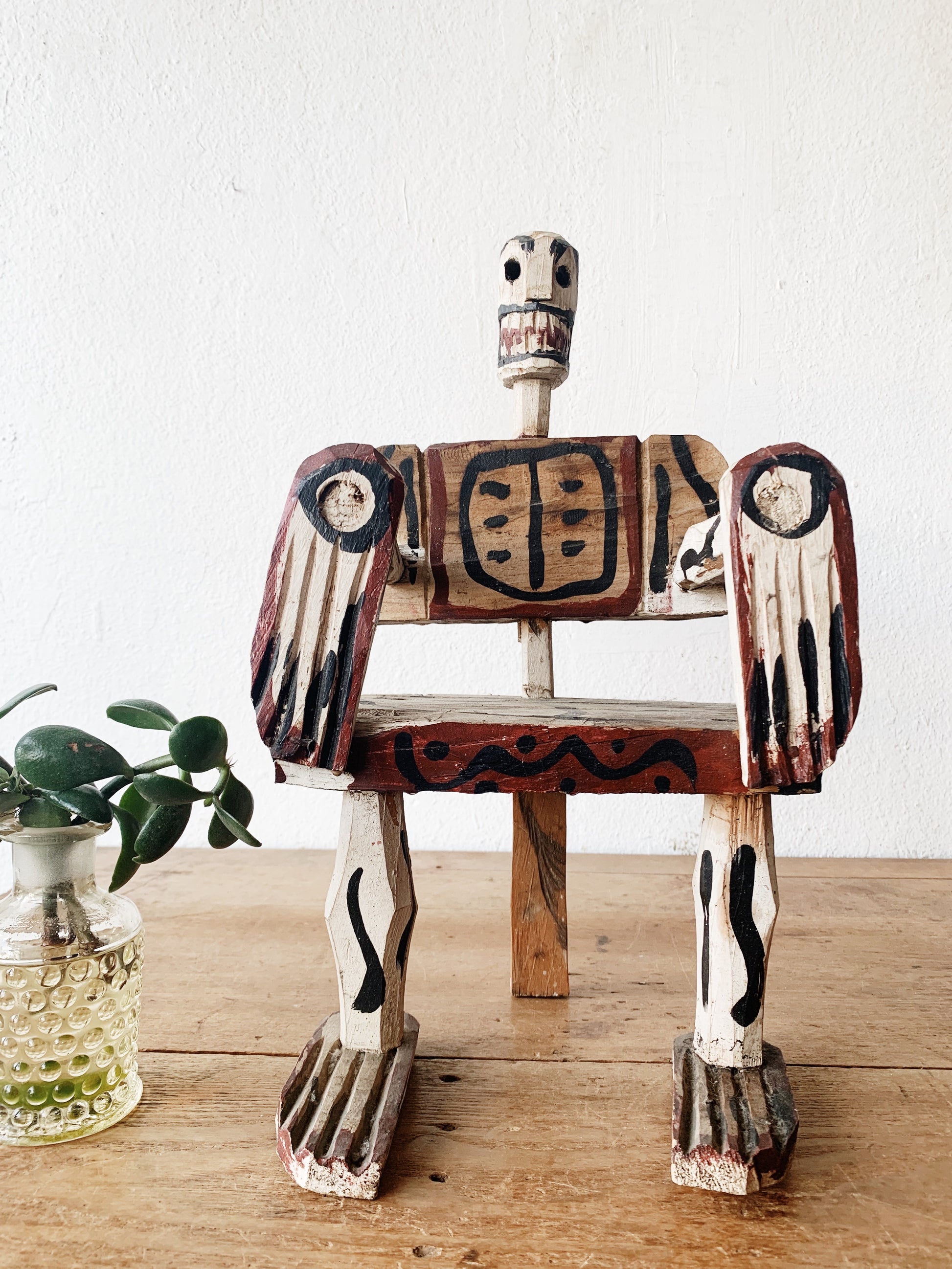 Fantastic vintage hand painted Day of the Dead folk art piece from Mexico. This is an art piece but functional as a plant stand or altar as well.