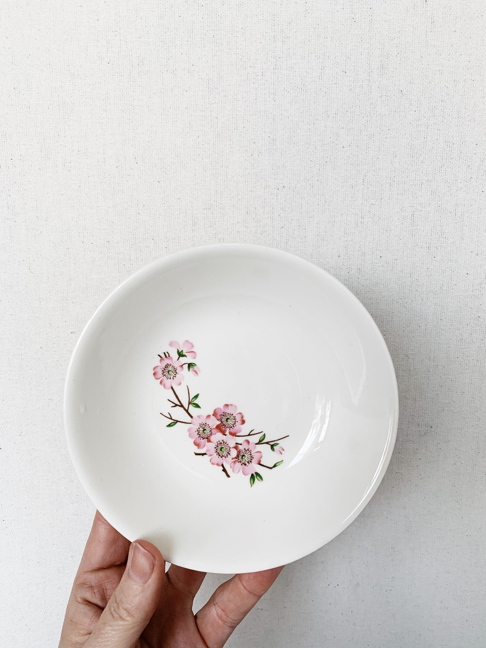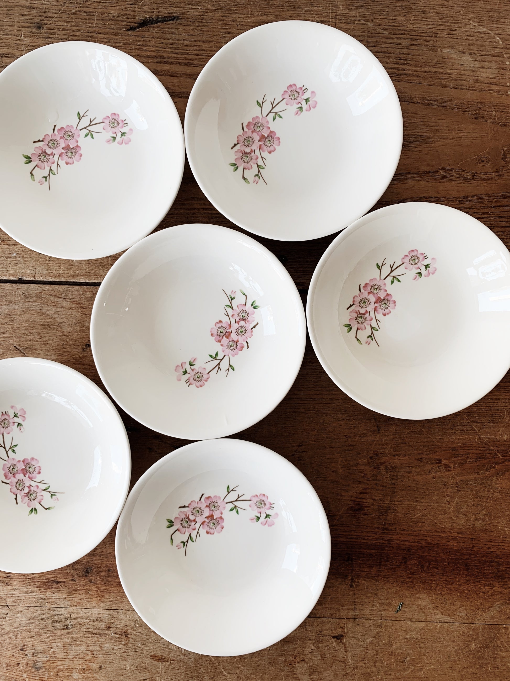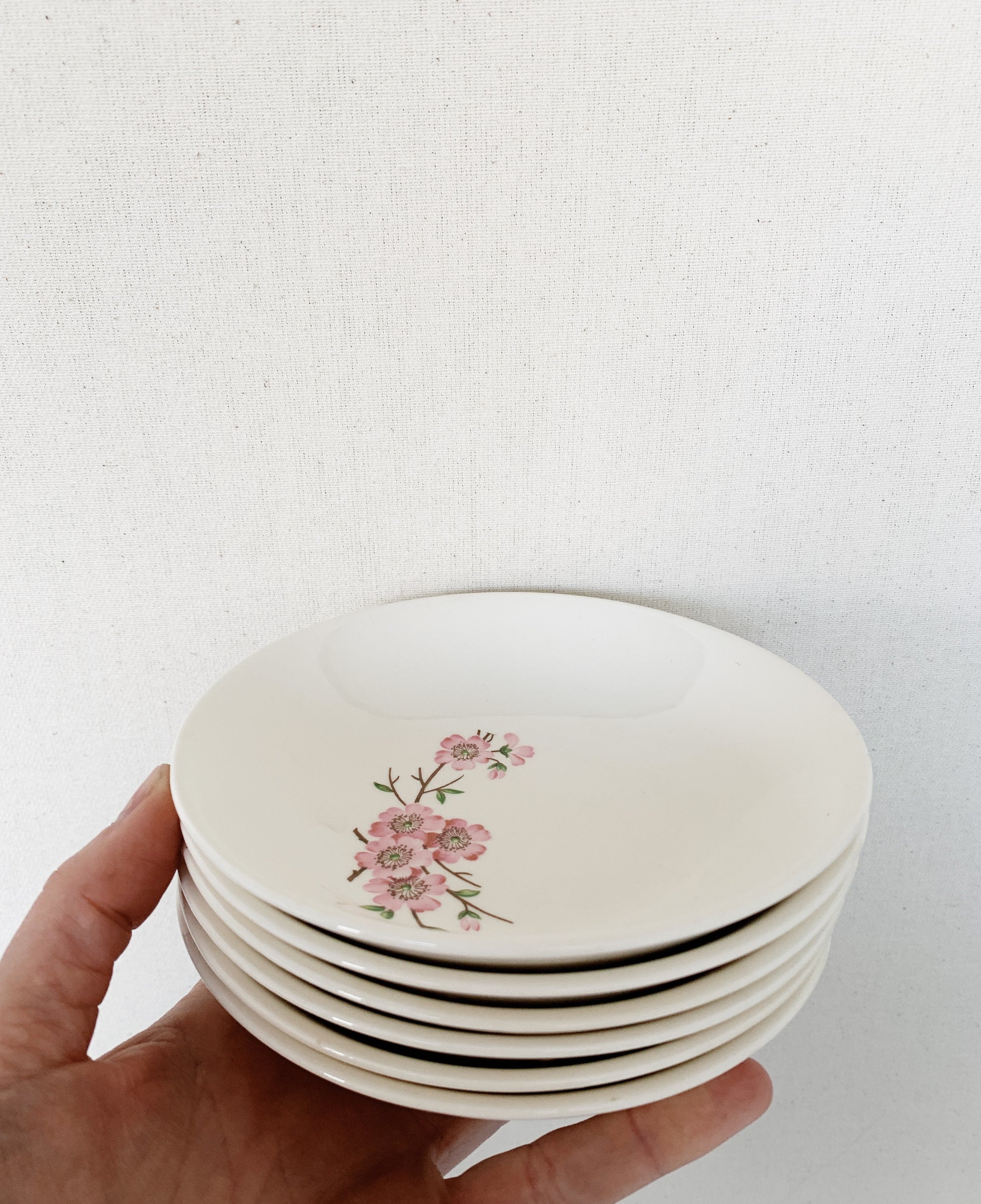 Sweet set of vintage desert / snack bowls with hand painted cherry blossoms. So pretty!