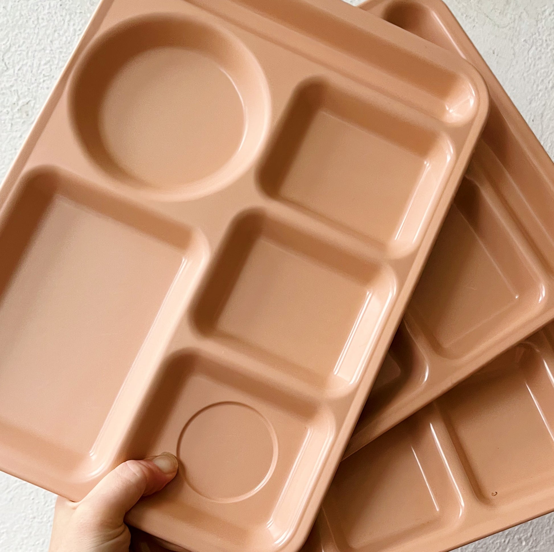 Fab clean lined vintage divided trays. USA made. These are wonderful for seed starting, homeschooling, portable arts and crafts, even lunch. Great earthy peachy pink color, represented most accurately in the last photo