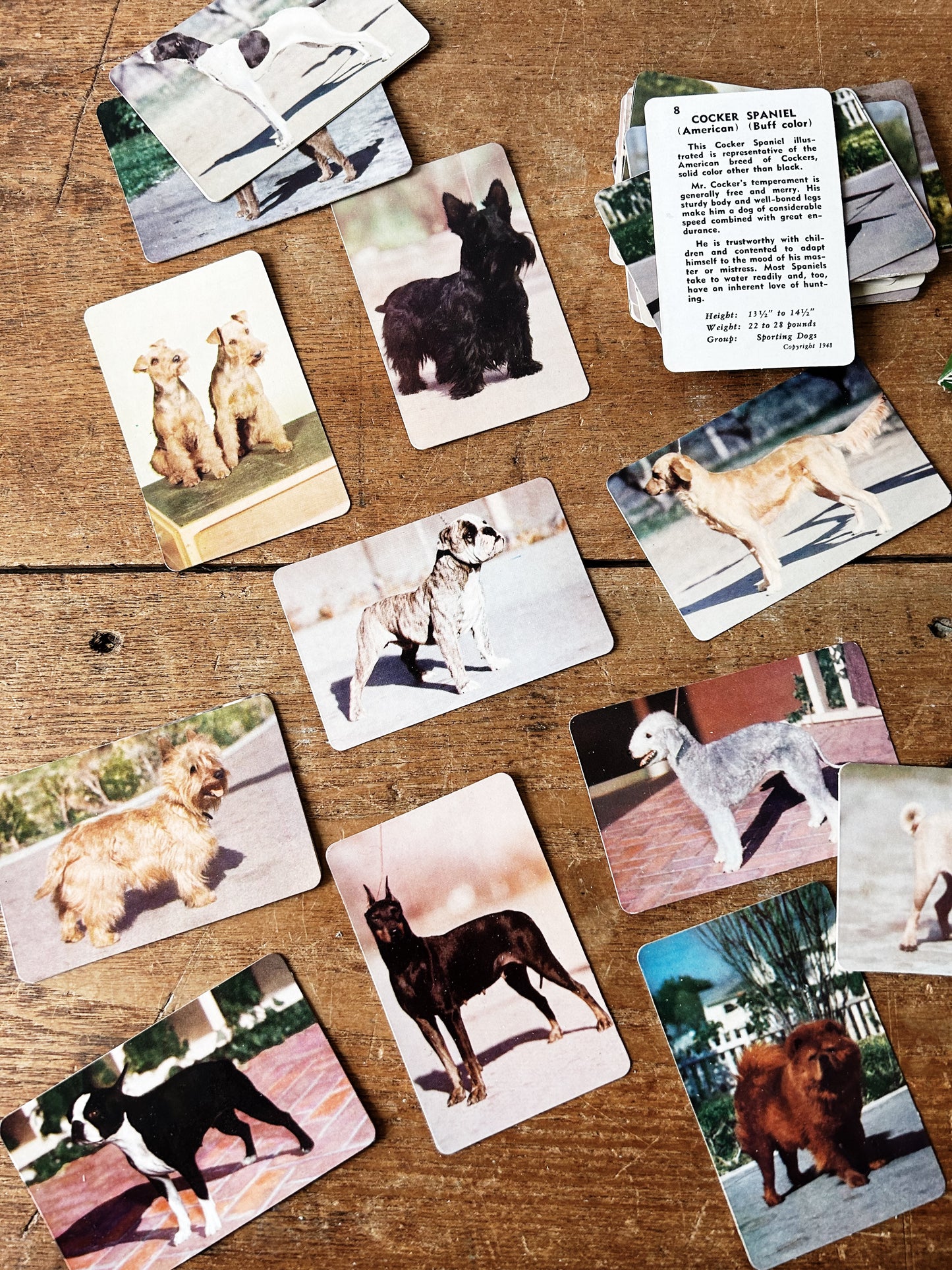 Vintage Triandex series consists of 40 cards, full color reproductions from original kodachromes of popular and well known breeds of dogs. On the reverse side of each card is information about the dogs origin, habits and characteristics.