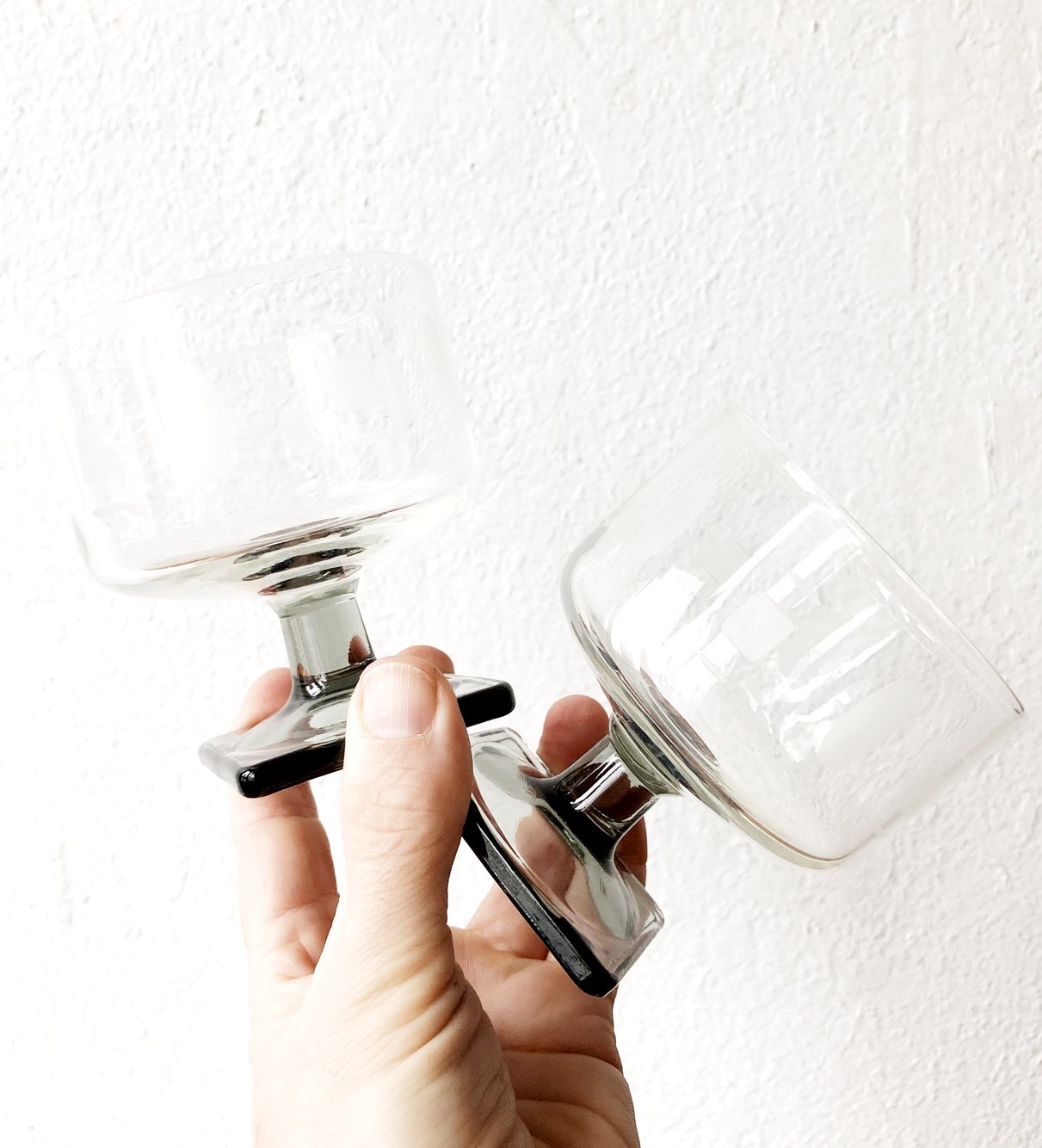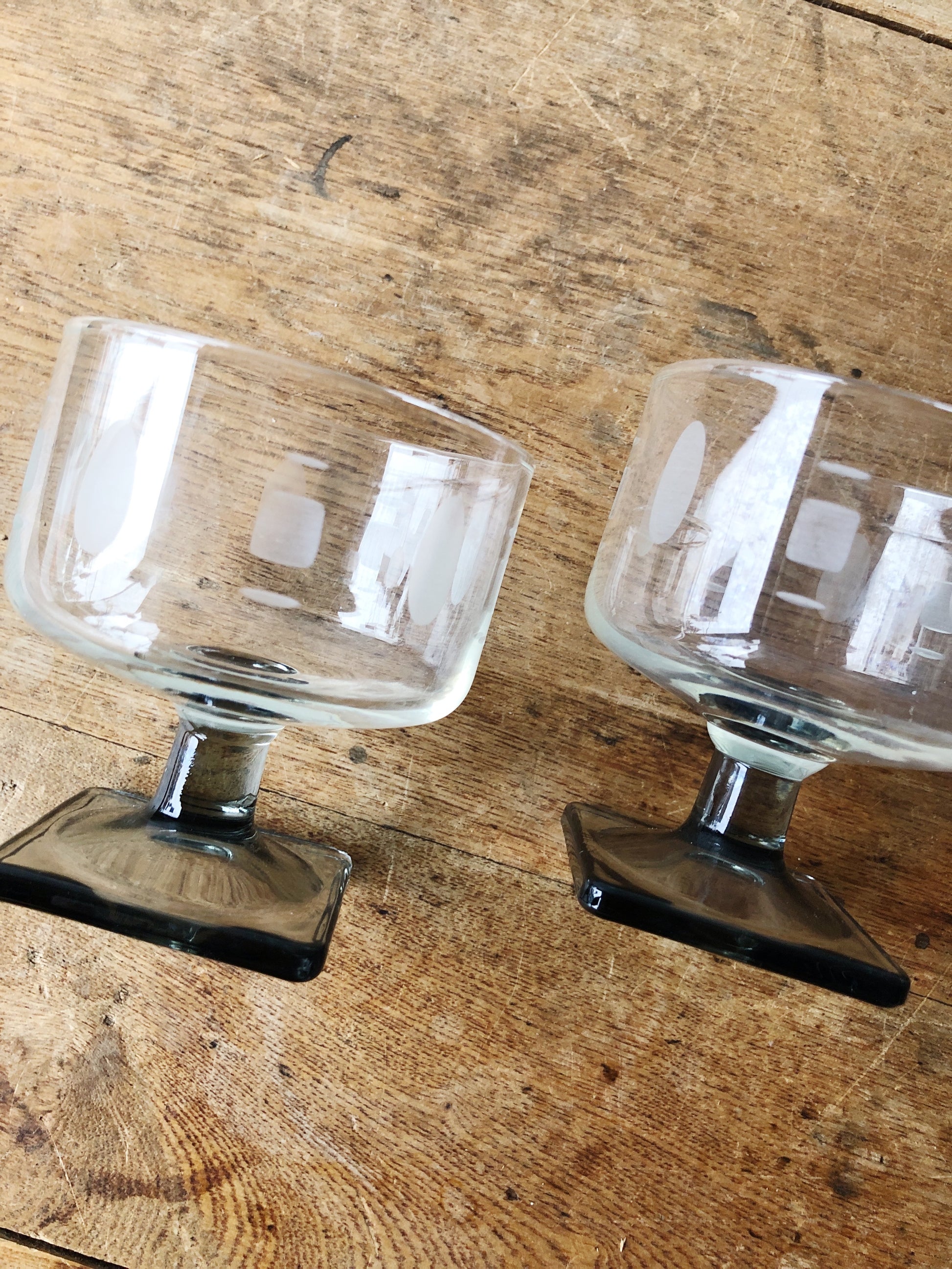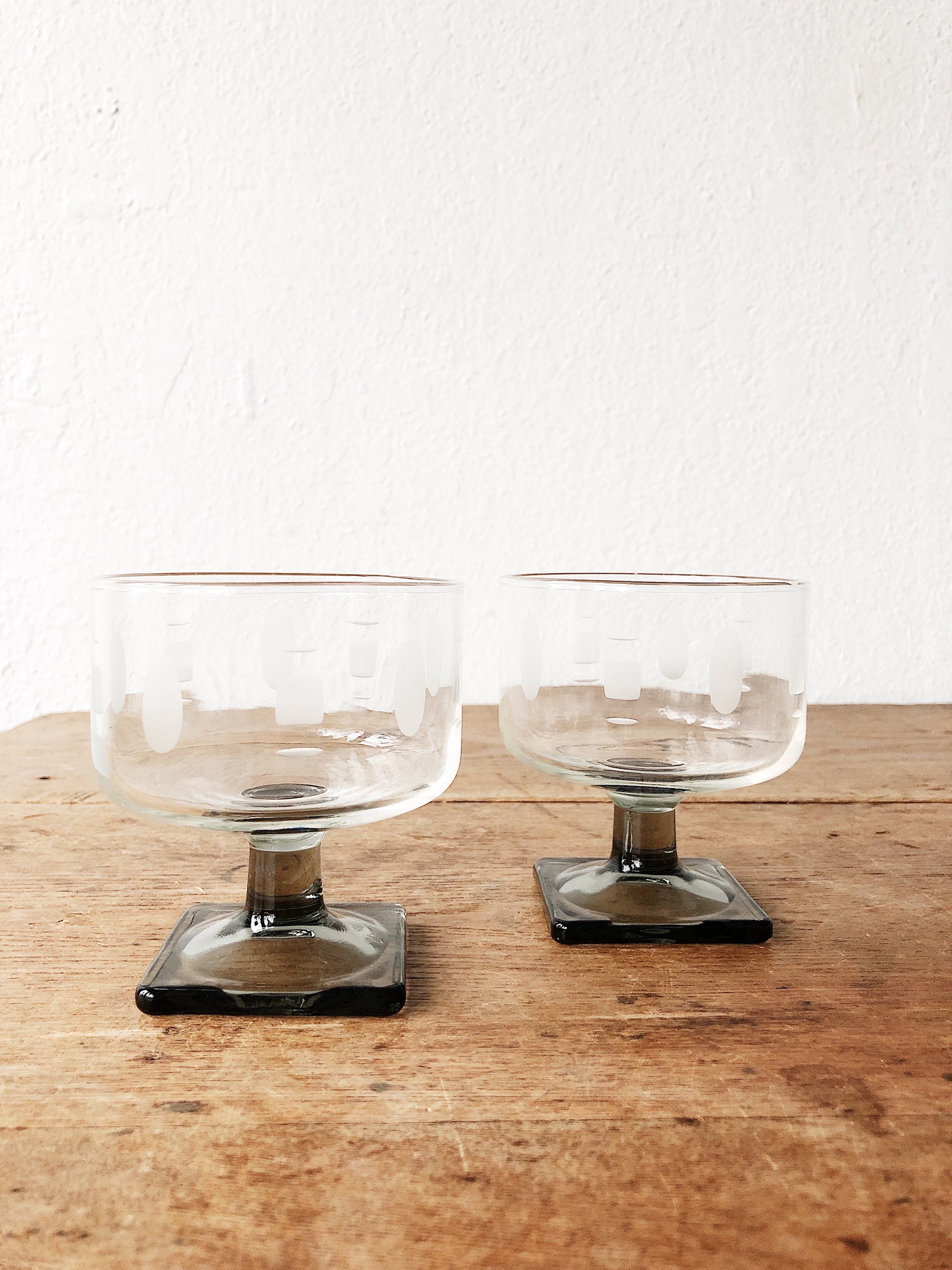 These stunners. Smoked glass square bases and etched geometric pattern on the coupe. We’re already looking forward to ringing in a better year.