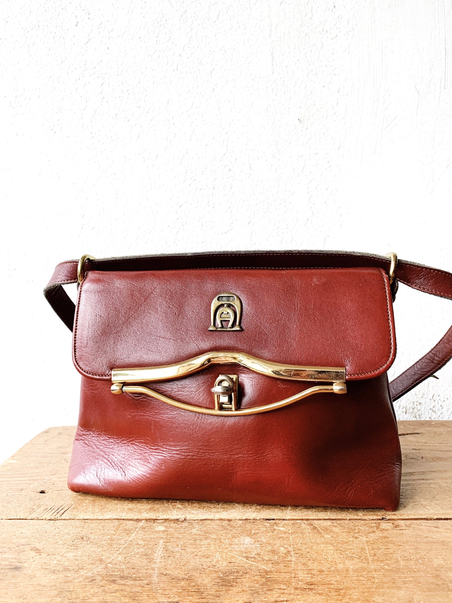 Great handmade vintage Etienne Aigner leather handbag. Brass details, including feet. In great condition! Classy, and collectible!