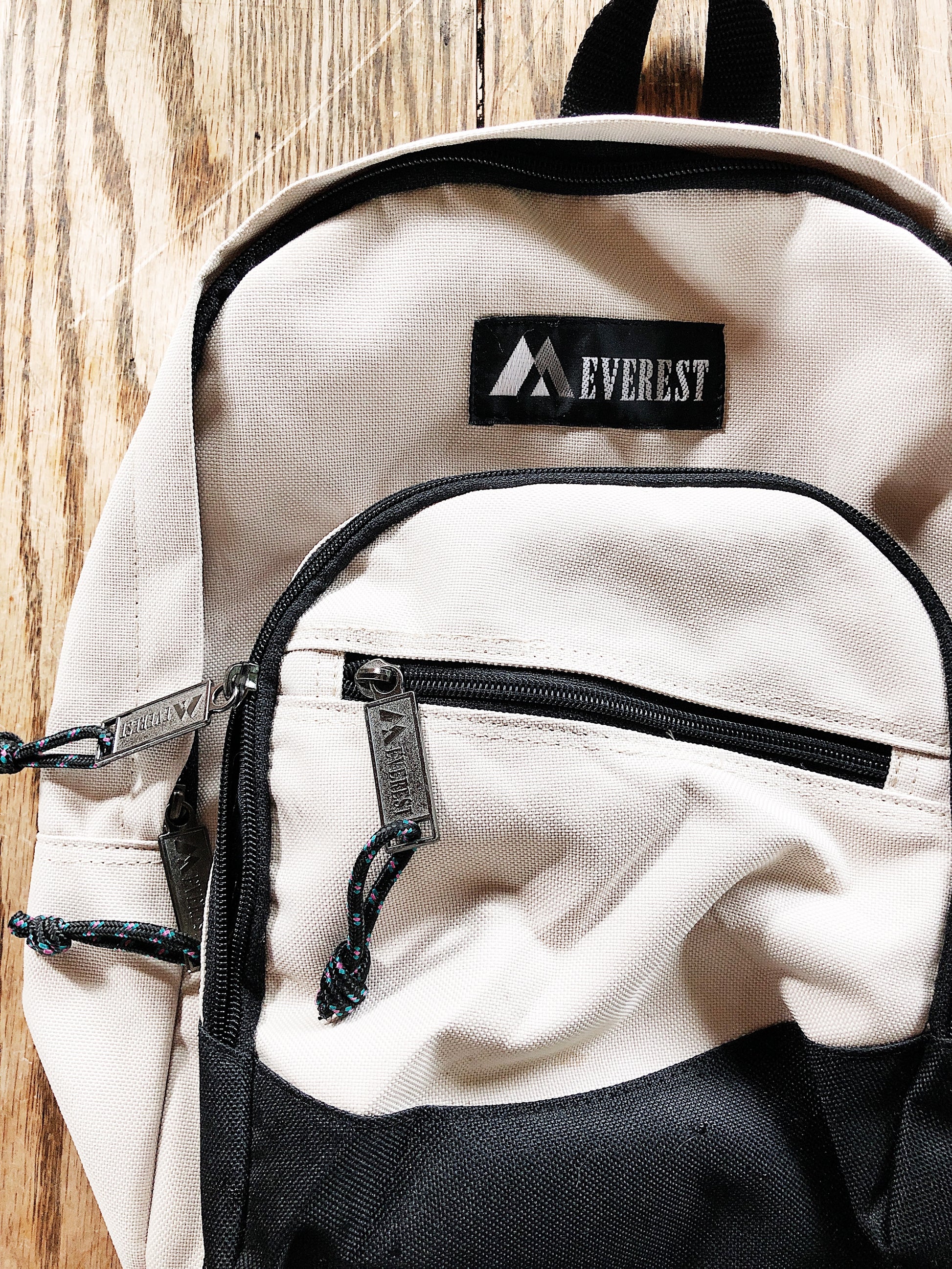 Gently used back pack by Everest in a smaller size. Perfect day hike size. In great condition save for a few surface spots. Colors are oyster white and black