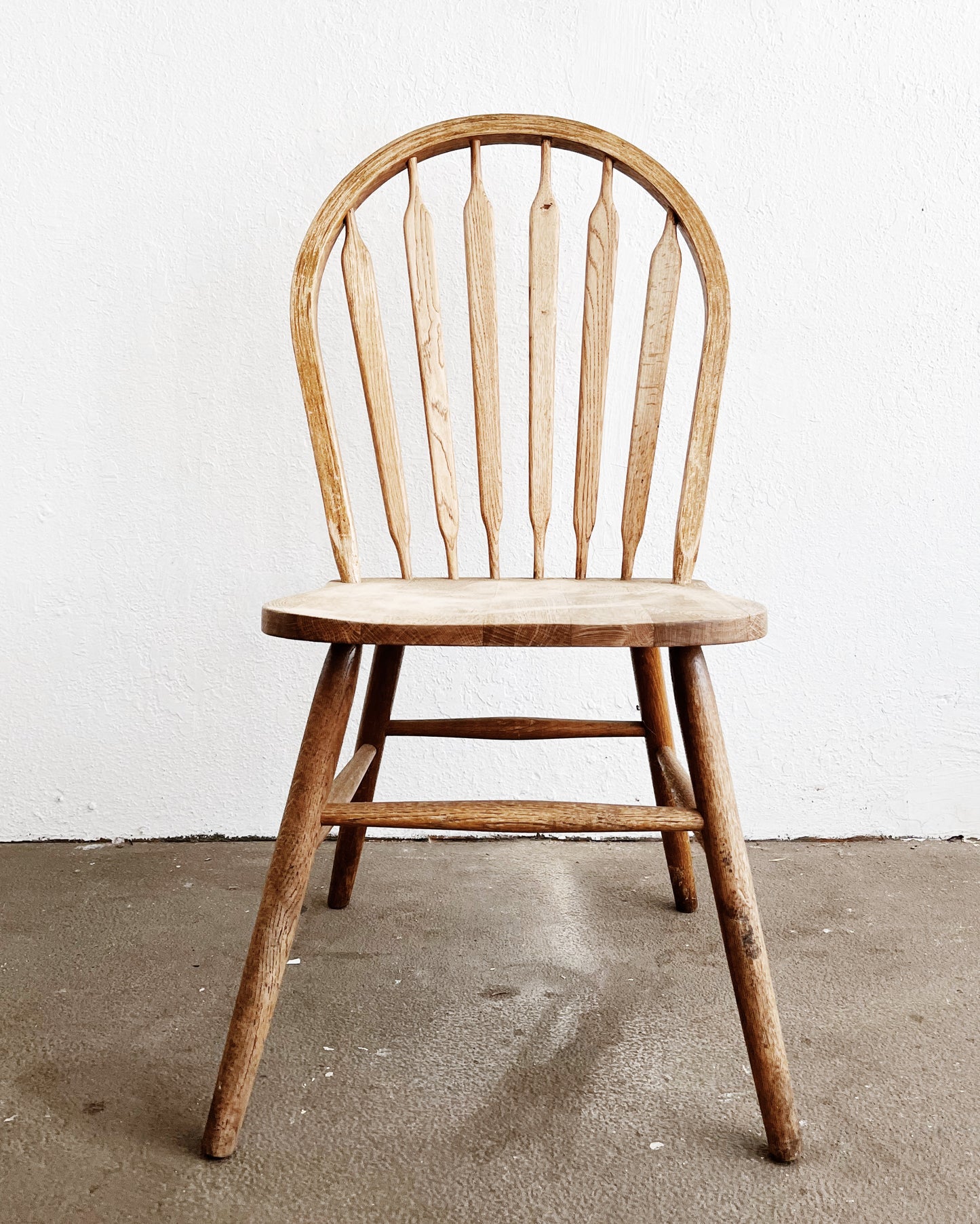 Faded wood farmhouse chairs. Nice classic shape. Comfortable. Great for dining or as a desk chair. Sturdy but with overall surface wear as shown