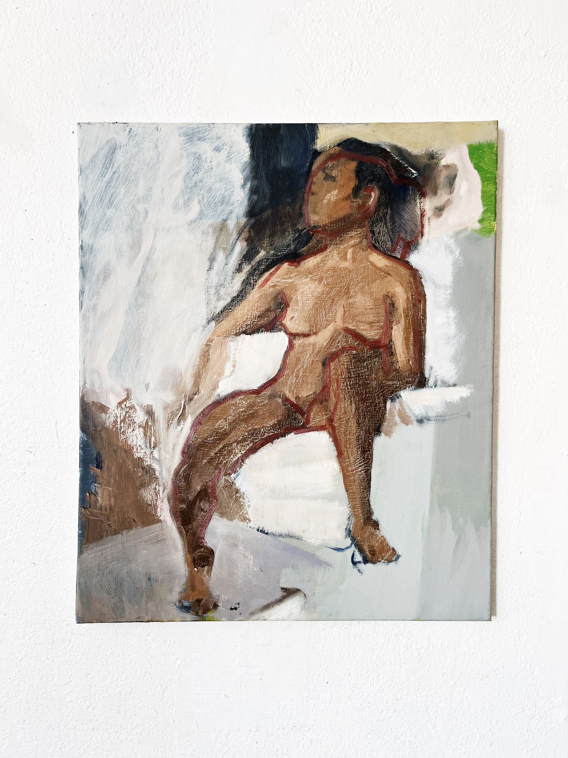 Lovely original figural painting. The brush strokes and colors are ethereal. The composition grounds it. On stretched canvas