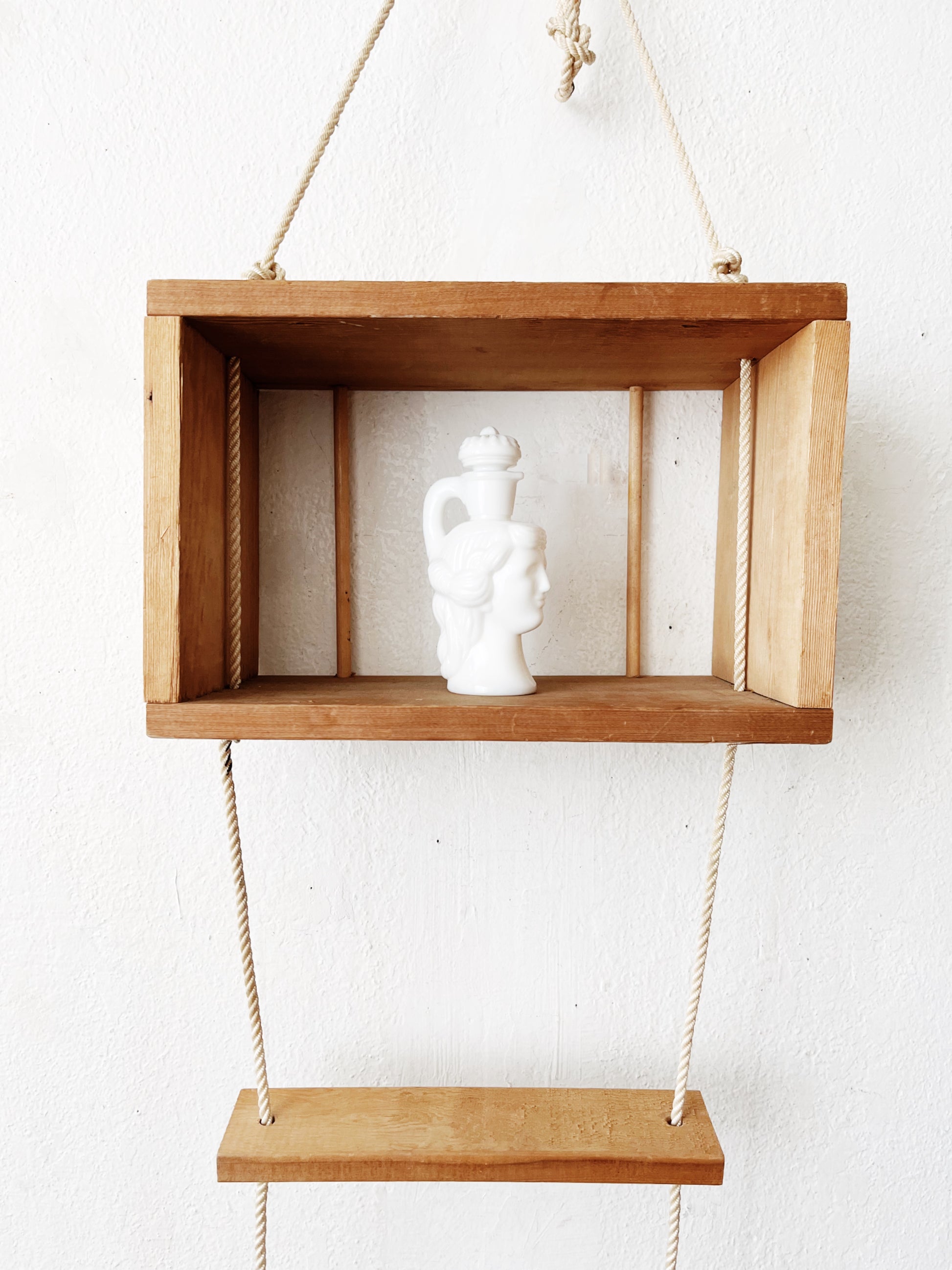 Vintage 1950s wood fire escape ladder by Danco, Portland Oregon. Safety aside, this makes a wonderful interior piece of decor and salvaged history. Ladder folds up to be incased in the wood box for which it hangs. Heavy duty zinc carabiner included