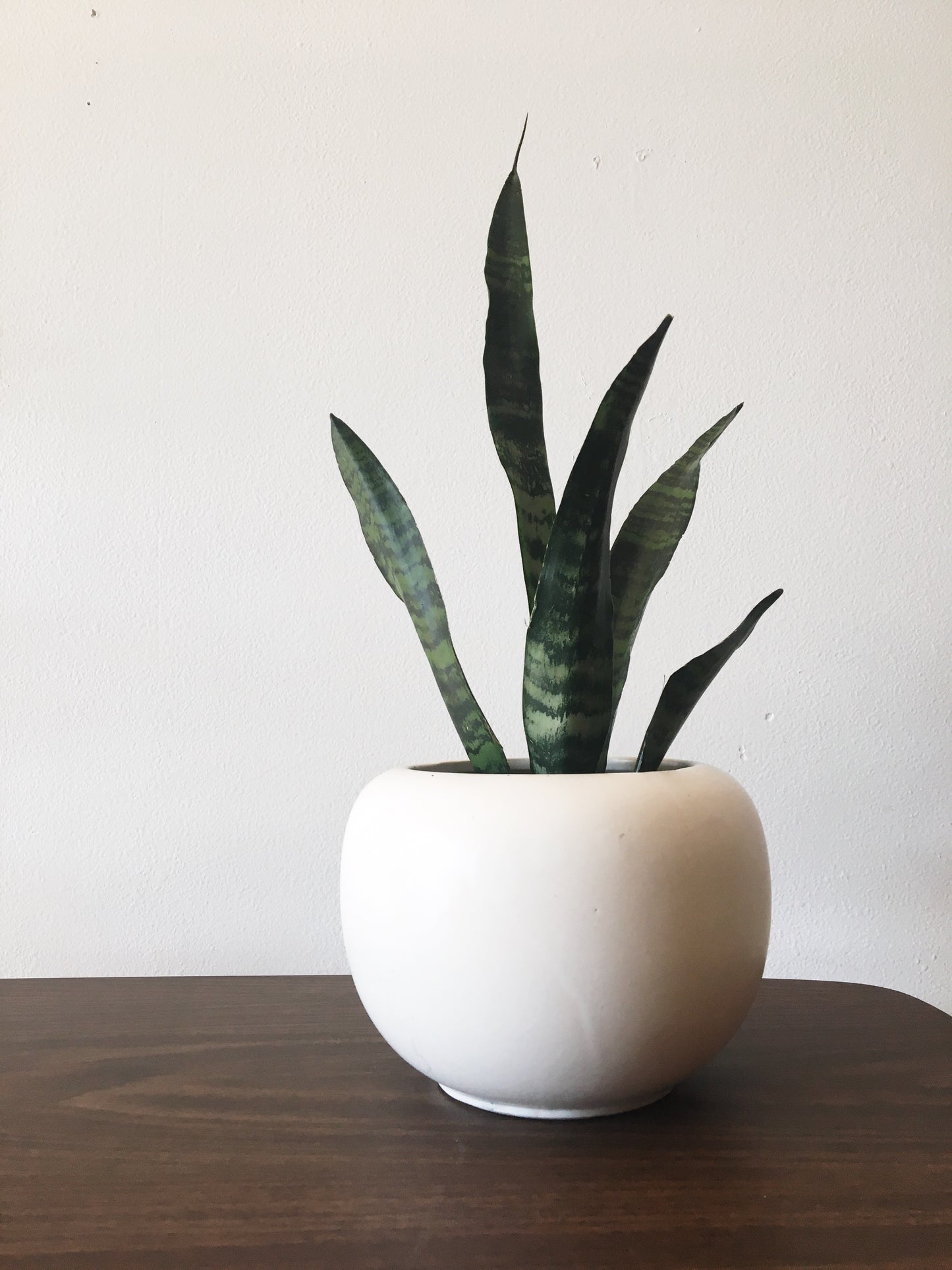 Matte white vintage Floraline orb pot. Minimalist beauty. No drainage hole, just add a layer of rocks at the bottom or put a 4” grow pot in it as in the photos.