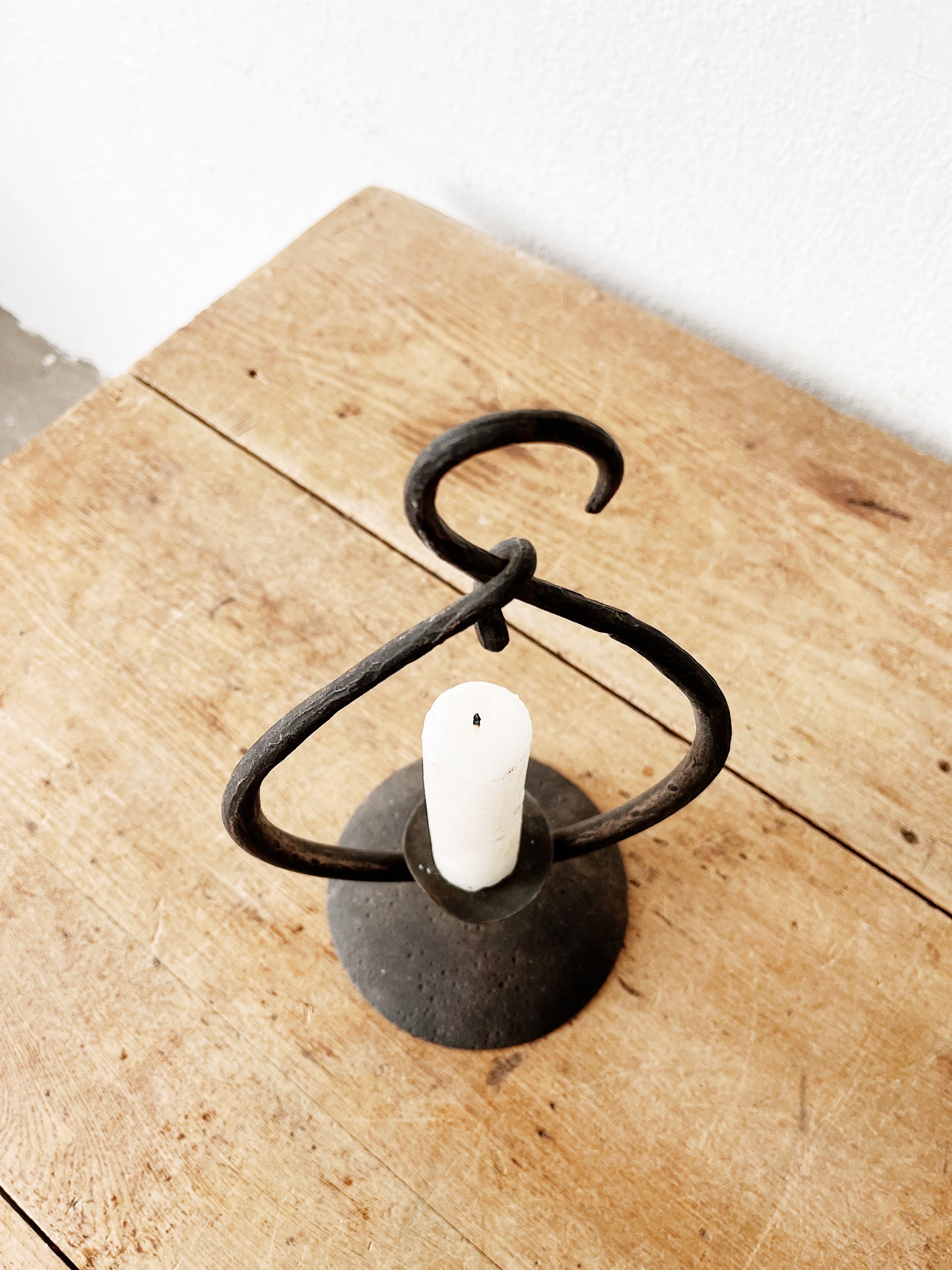 Cast iron primitive candle holder. Hand forged hook for hanging. Takes a narrow pillar candle or burn incense or Palo