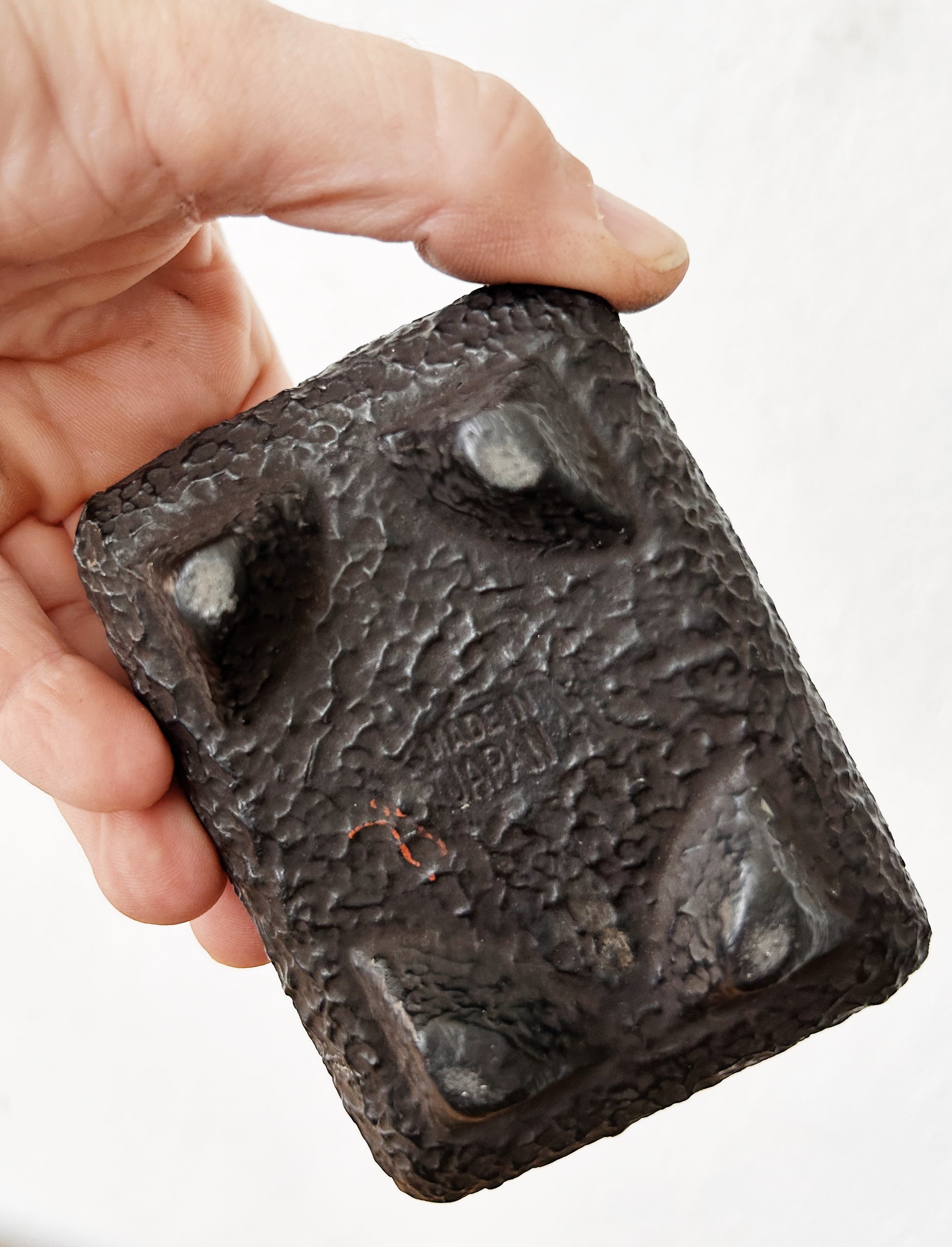 Sweet and petite ceramic vessel made in mid century Japan. Footed. Perfect in the bath holding qtips