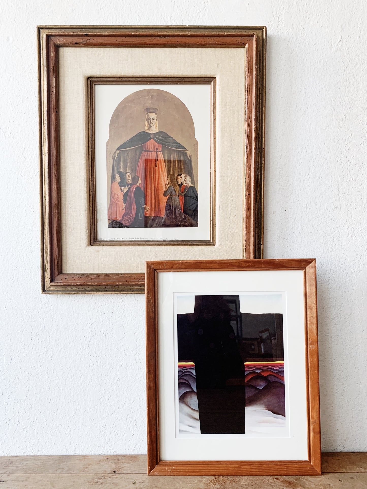 the Madonna of erect is in a gorgeous vintage wood frame with linen. Under glass. 20x17”