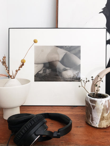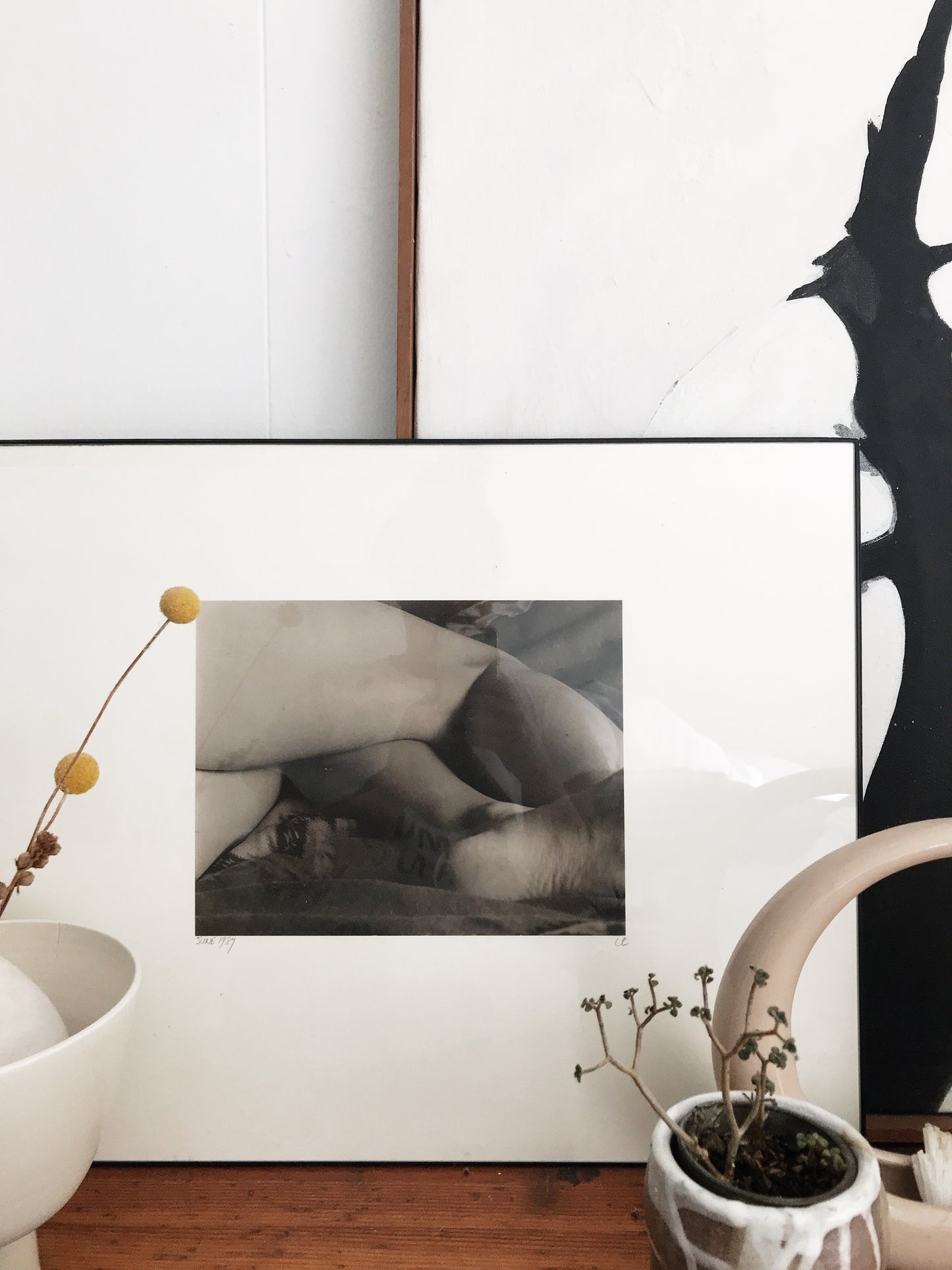 Lovely still life portrait of a women’s legs. Quiet and sensual. Framed simply. Circa 1980s
