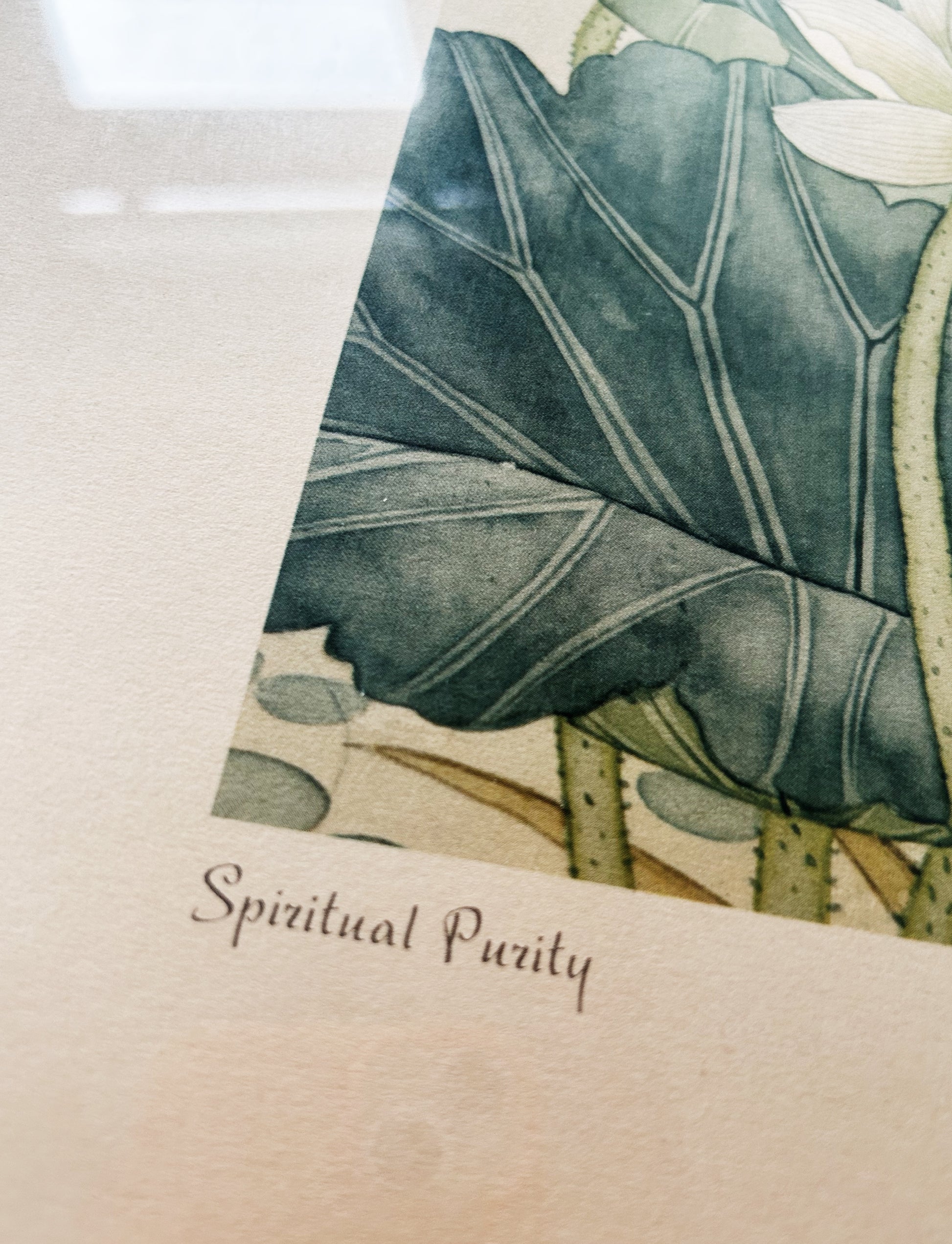 Wonderful antique framed lithograph under glass. Spiritual Purity! And the back is so charming too.