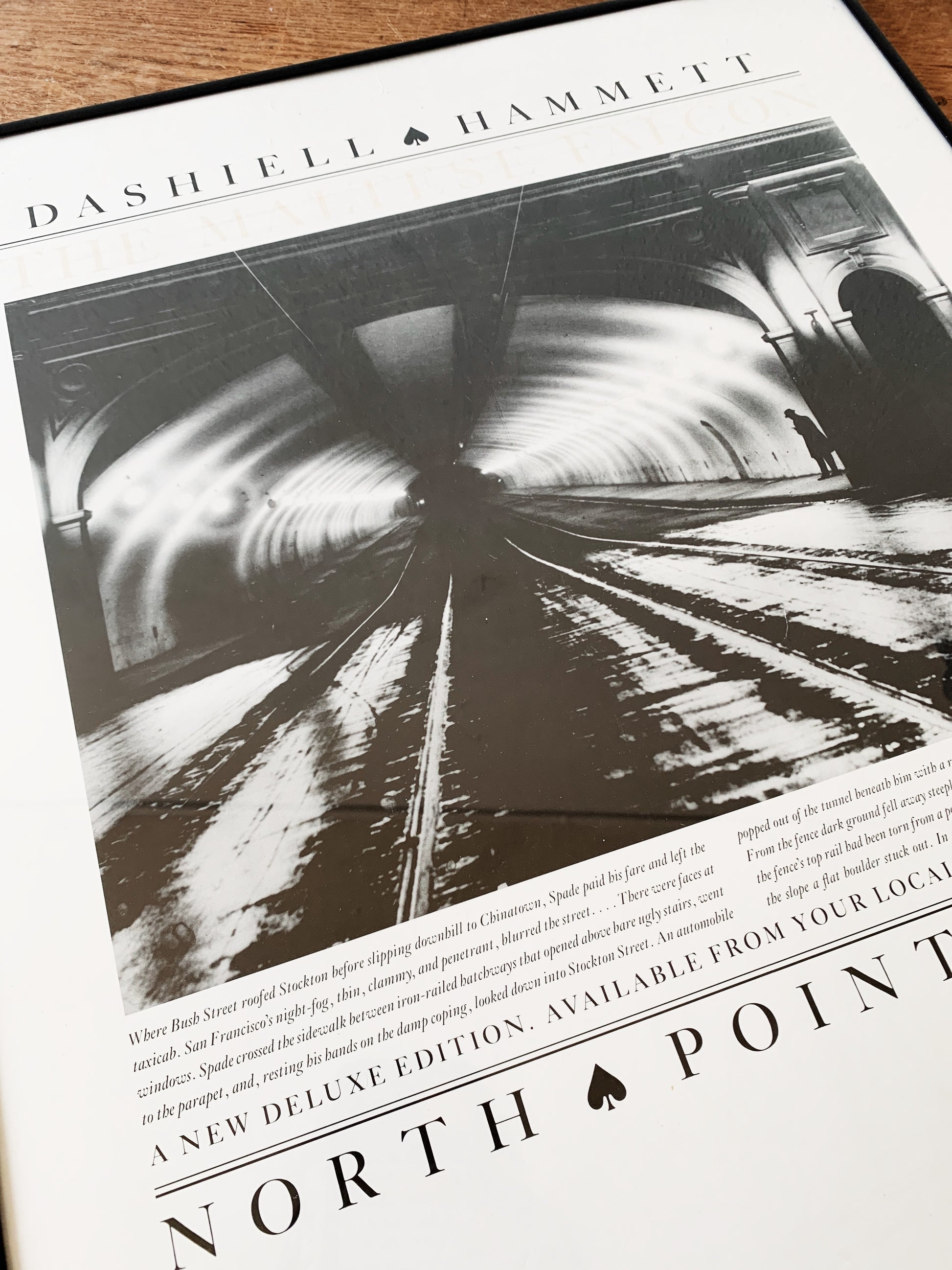 ‘Where Bush Street roofed Stockton before slipping downhill to Chinatown, Spade paid his fare and left the taxicab. San Francisco’s night-fog, thin, clammy, and penetrant, blurred the street ... There were faces at windows...... . . . . ‘