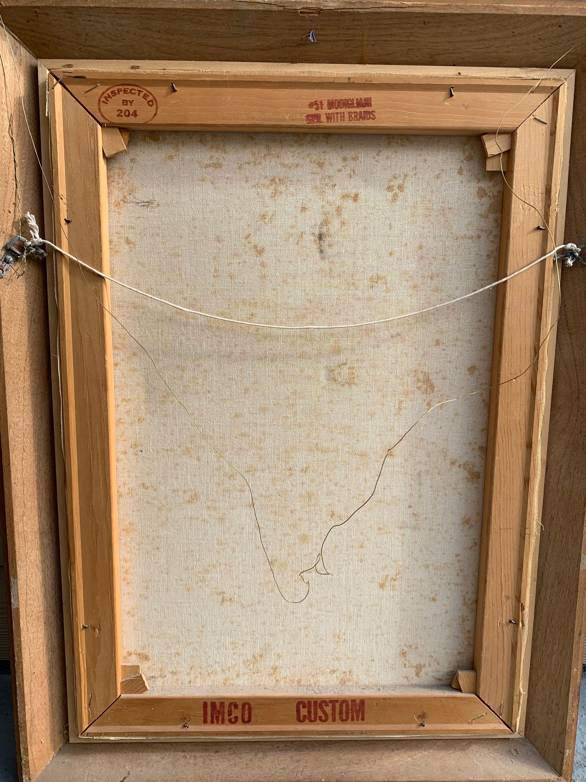 Wonderful Modigliani framed canvas print. Nice larger size in good shape. A few markings to the canvas, beautiful carved wood frame, wire hanger on back.