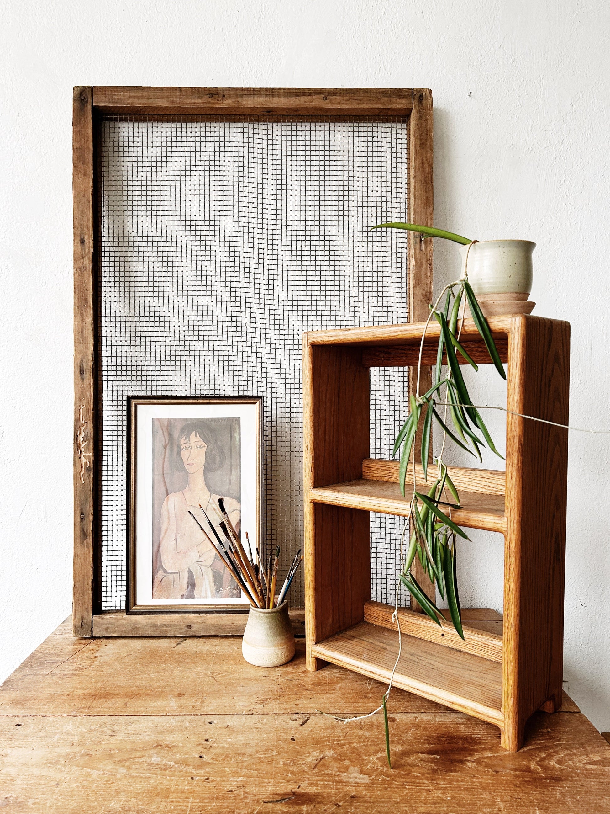 Perennial favorite, Modigliani portrait framed under glass, in vintage wood with wire hanger.
