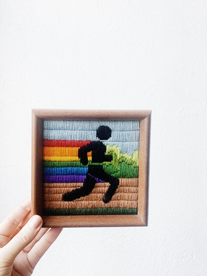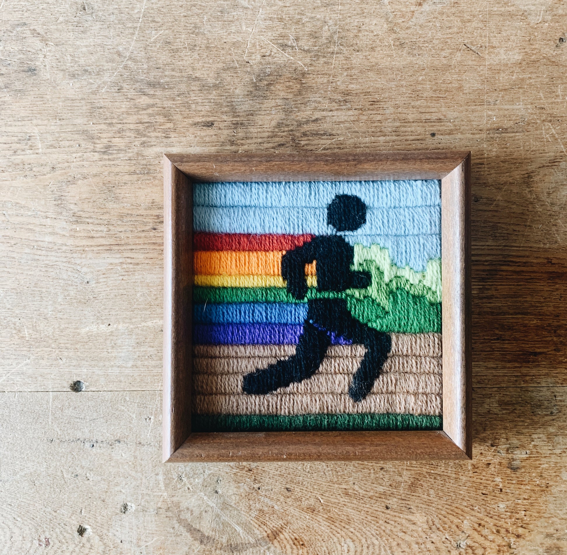Awesome vintage framed needlepoint with message on the back ‘I hope you run for life’